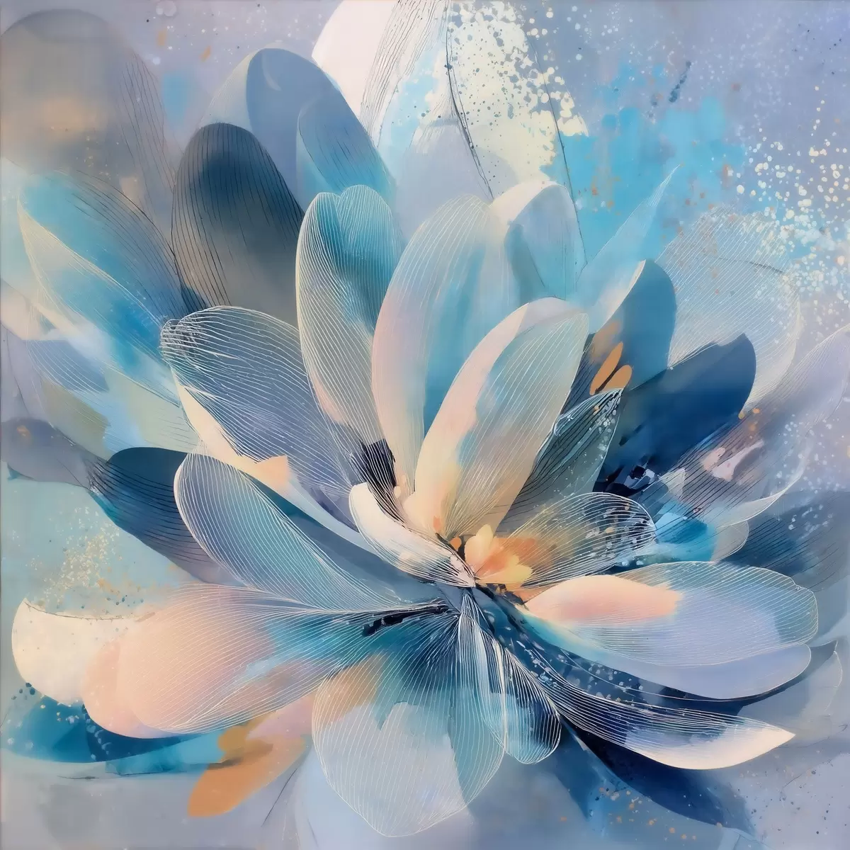 Glezna Abstrakta zieda attēls vēsās toņos mākslas plakāta stilā Nr s48186