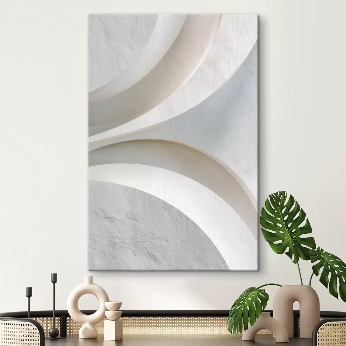 Glezna Dekoratīvs paneļš ar trīsdimensiju arhitektūras formām uz gaiša fona Nr s48191