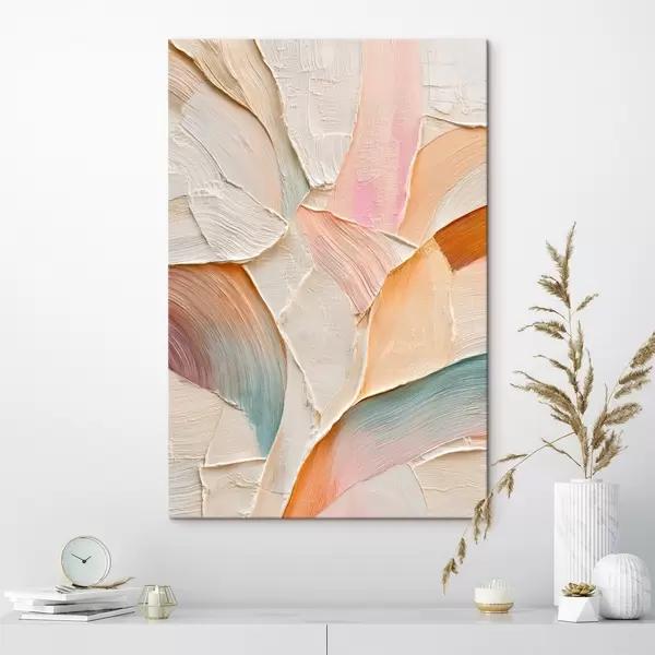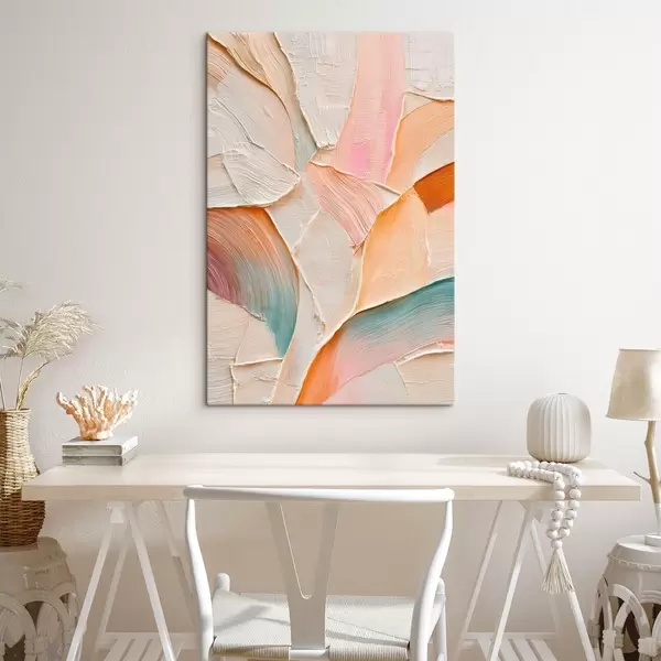 Glezna Abstrakts fons ar dinamiskām otu triepienu līnijām persiku un zilo toņu gammas krāsās Nr s48202
