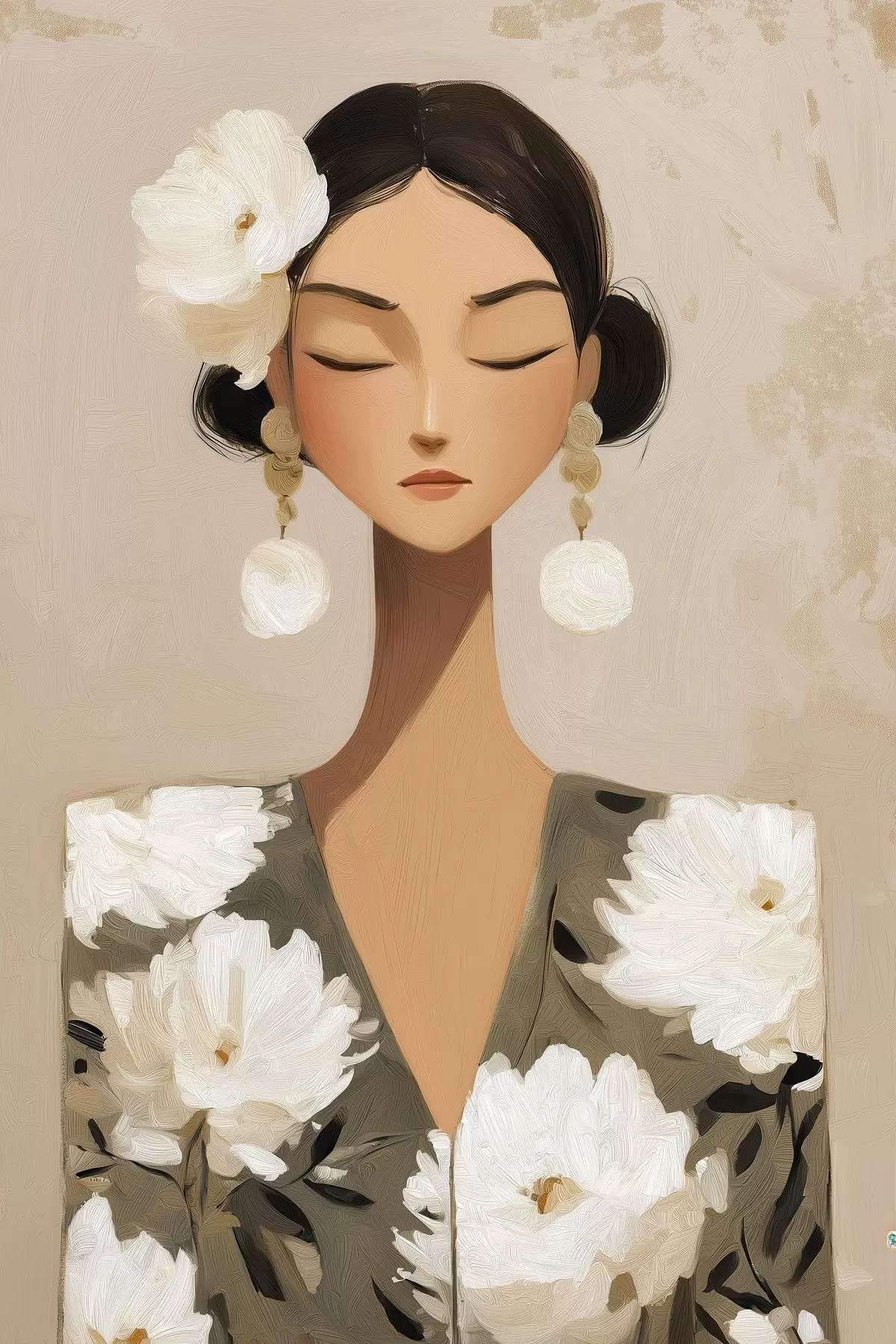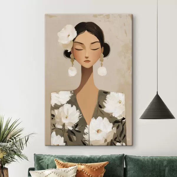 Glezna Meitene ar ziediem matos s48233