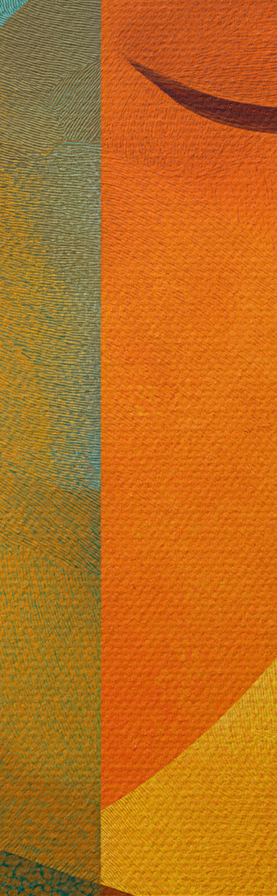 Smalkais diegu pinums uz šī audekla atgādina profesionālu mākslinieku audeklu virsmu.