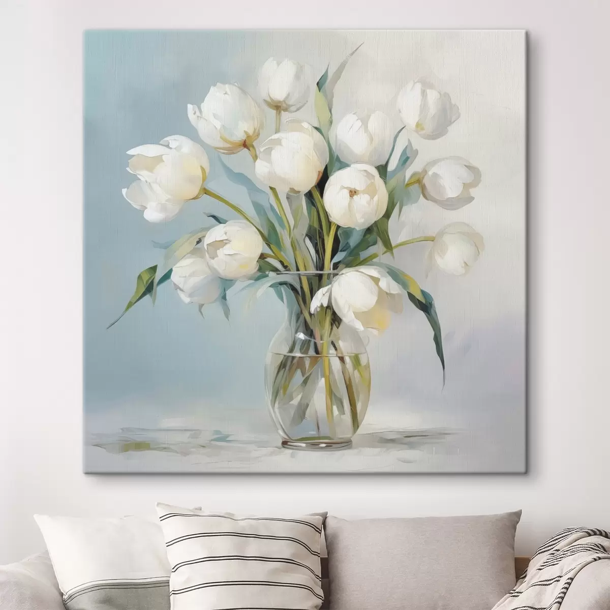 Glezna ir iekārtojama uzreiz pēc tās saņemšanas. Glezna tiks izstiepta uz 2 cm platām koka nestuvēm.