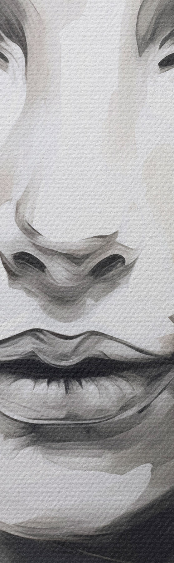Smalkais diegu pinums uz šī audekla atgādina profesionālu mākslinieku audeklu virsmu.