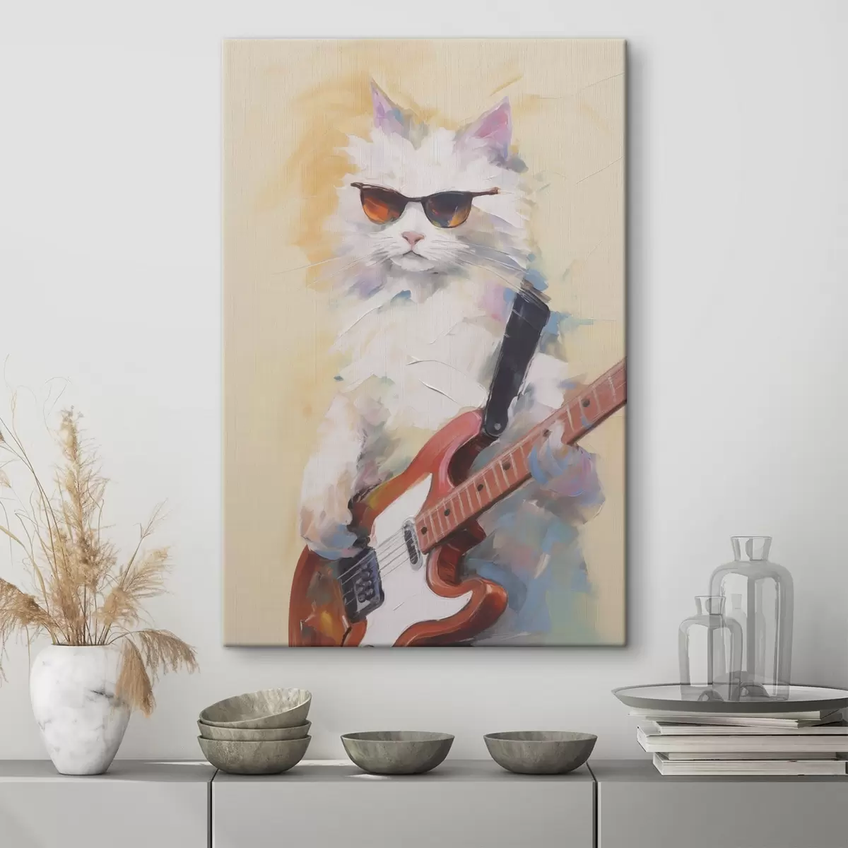 Glezna Kaķis ar ģitāru imitācijas glezna s48274