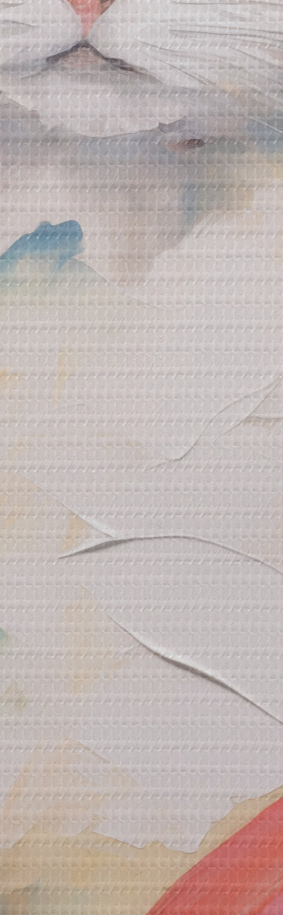 Smalkais diegu pinums uz šī audekla atgādina profesionālu mākslinieku audeklu virsmu.