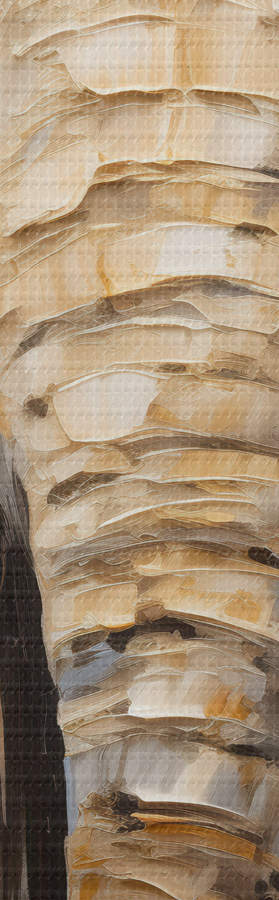 Smalkais diegu pinums uz šī audekla atgādina profesionālu mākslinieku audeklu virsmu.
