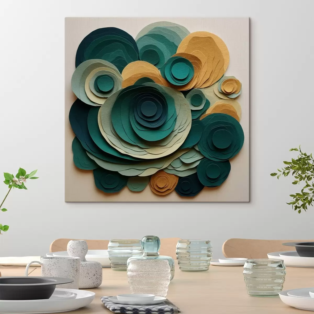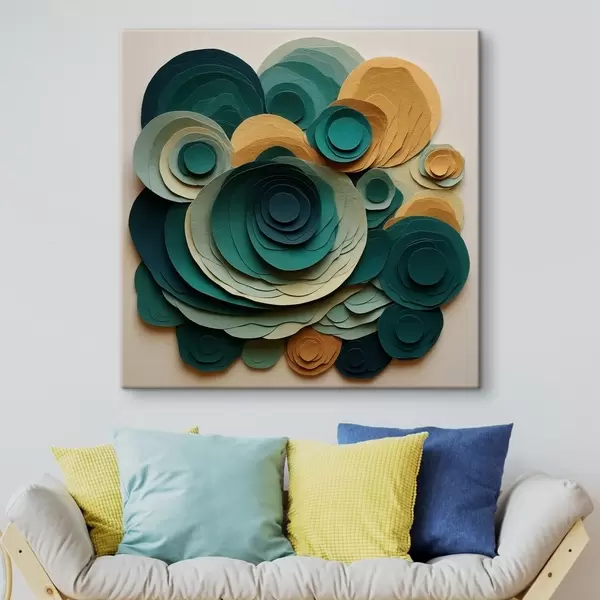Glezna Daudzslāņu papīra apļi zaļos un smilškrāsas toņos Nr s48332