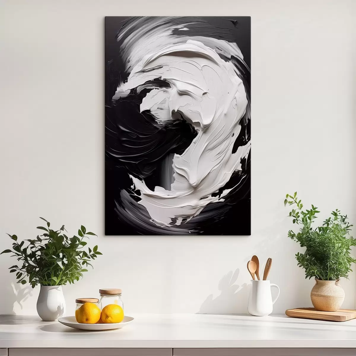 Glezna Abstrakti melnbalti teksturēti triepieni s48333