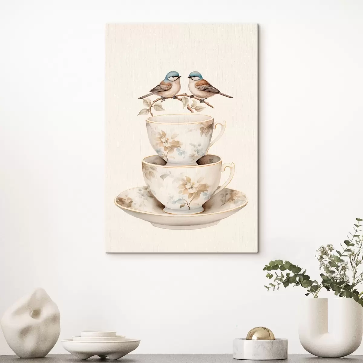 Glezna Divi putni uz zara virs tējas tases Nr s48347