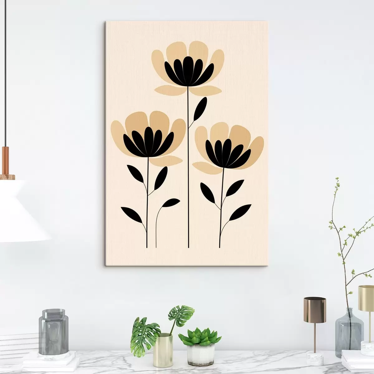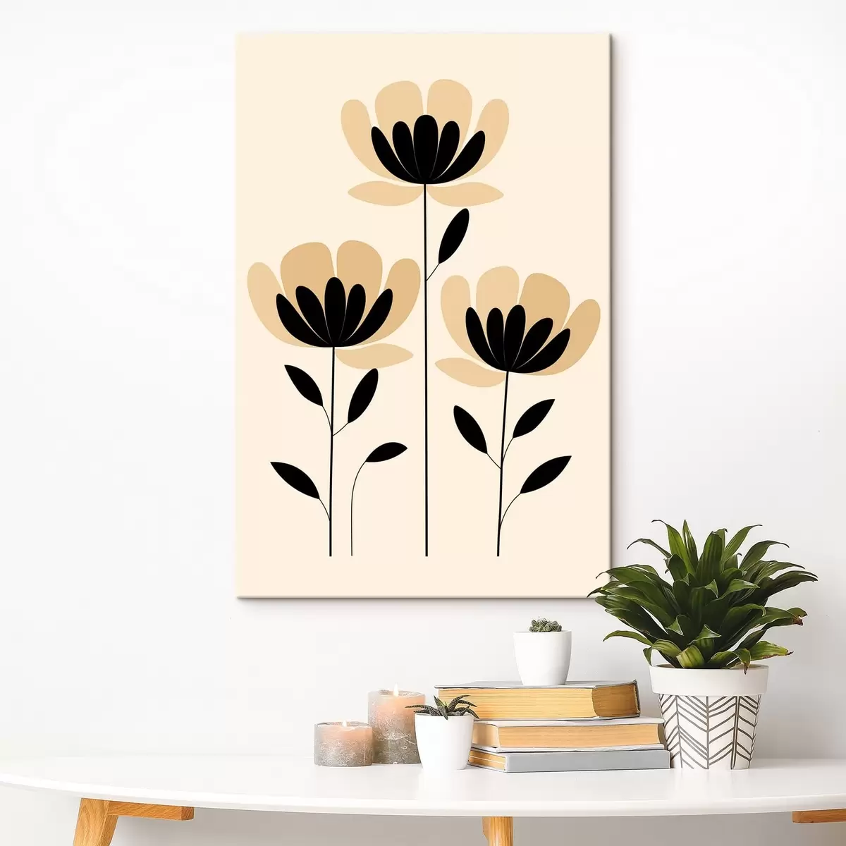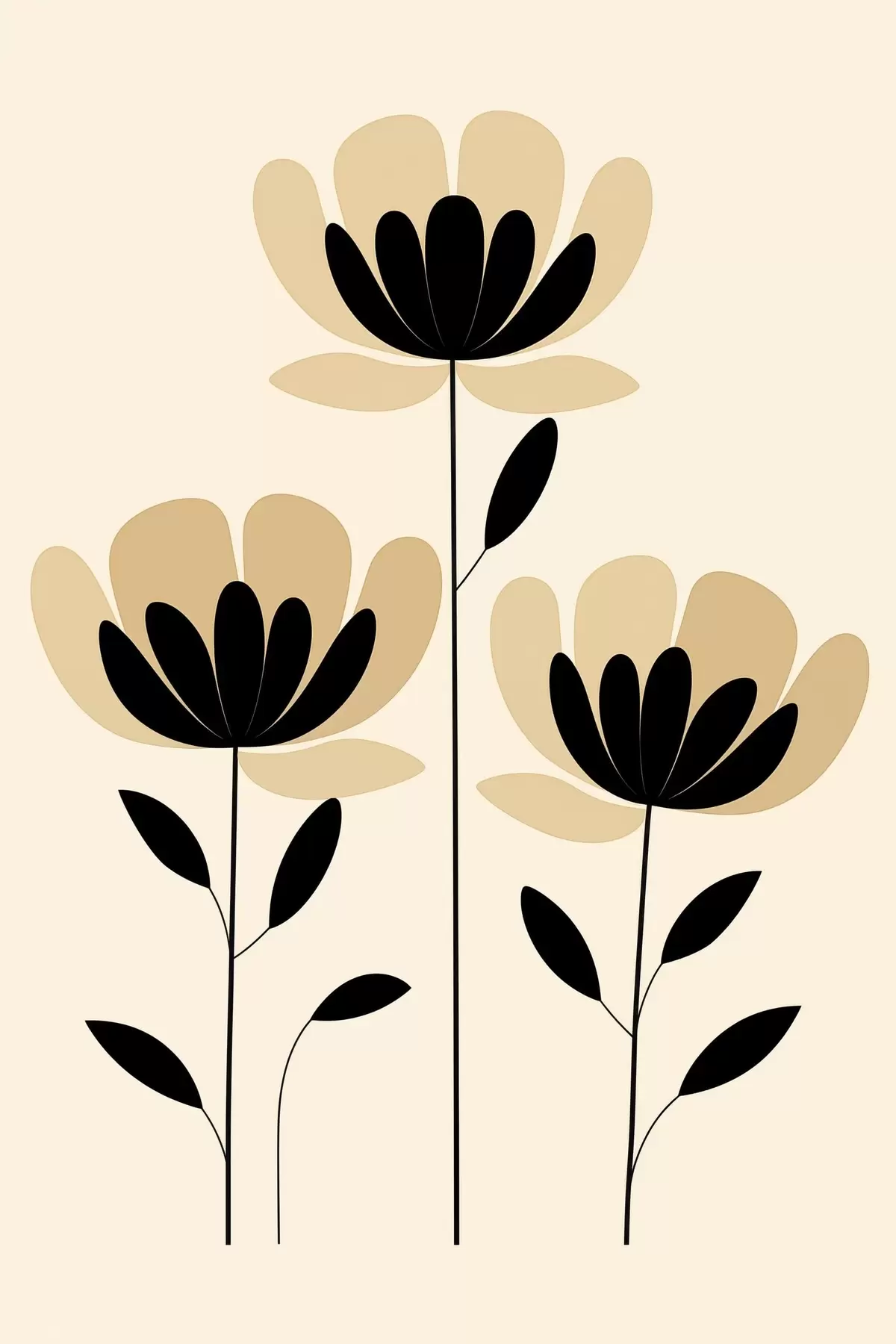 Glezna Minimālisma stilā veidoti ziedi melnā un smilškrāsā Nr s48353