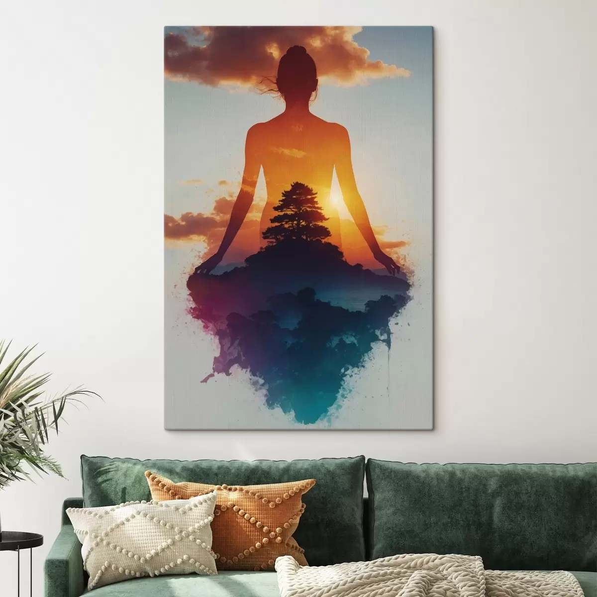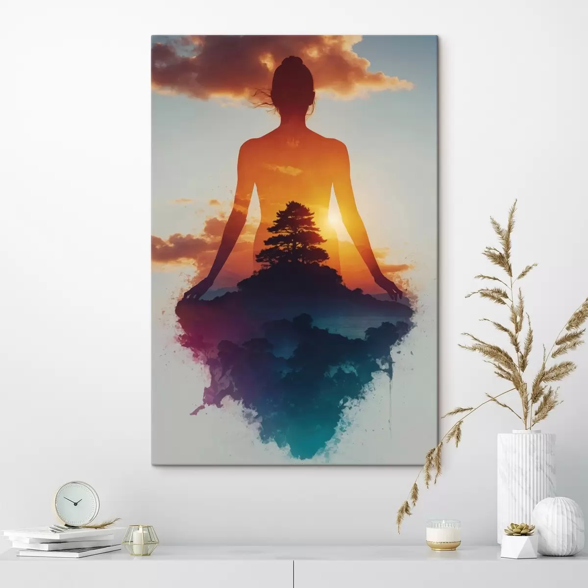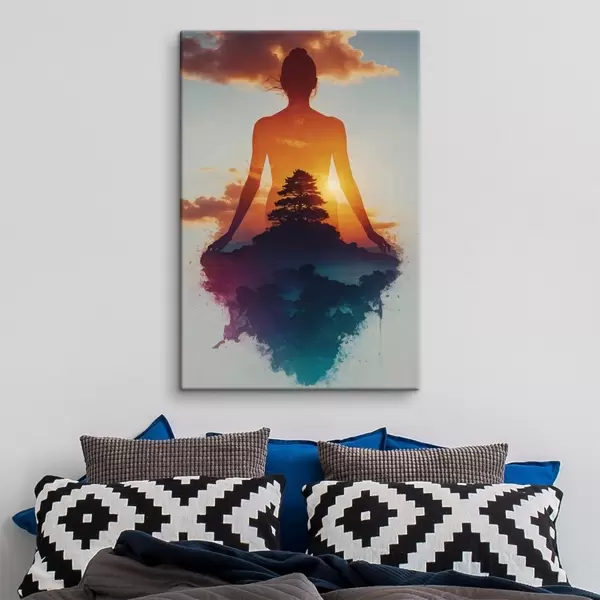 Glezna Cilvēka siluets ar saulrieta ainavu fonā s48364