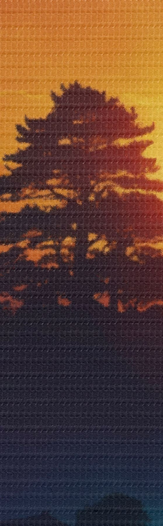 Smalkais diegu pinums uz šī audekla atgādina profesionālu mākslinieku audeklu virsmu.