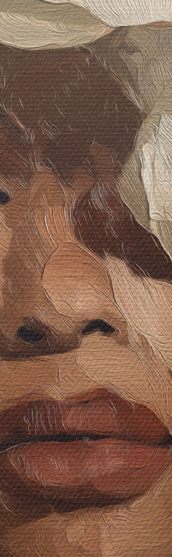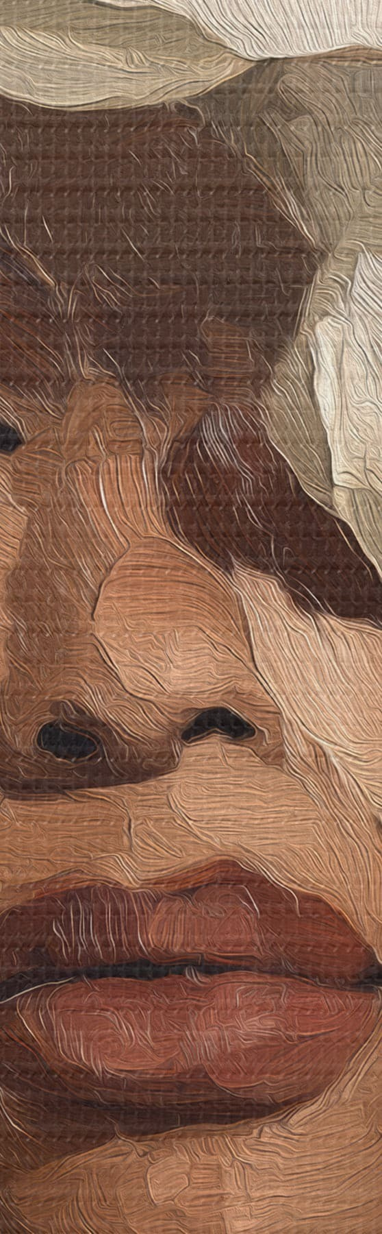 Smalkais diegu pinums uz šī audekla atgādina profesionālu mākslinieku audeklu virsmu.