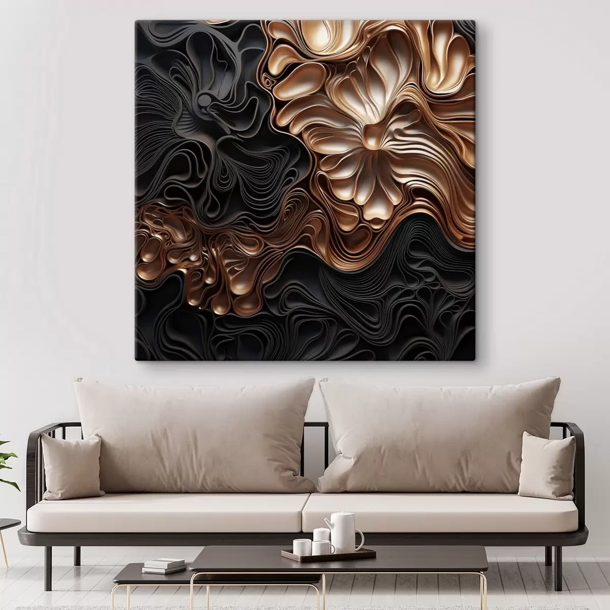 Glezna Abstraktas, plūstošas, organiski veidotas tumšas formas, kas veido faktūru bagātu modernās mākslas darbu s48383