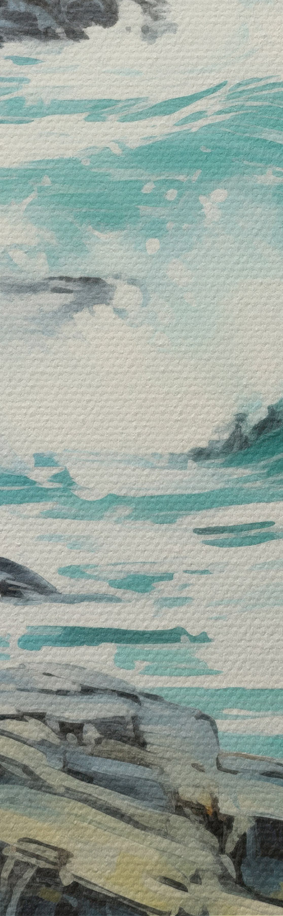 Glezna Akmenskrastu ainava ar viļņiem zem apmākušām debesīm, glezniecības stils s48388