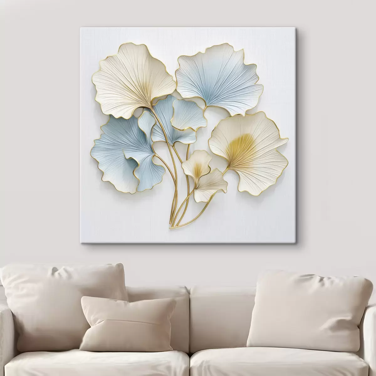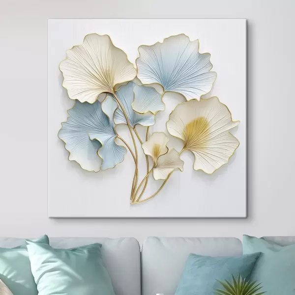 Glezna Stilizētas ginkgo lapas ar ziliem un dzelteniem akcentiem s48398