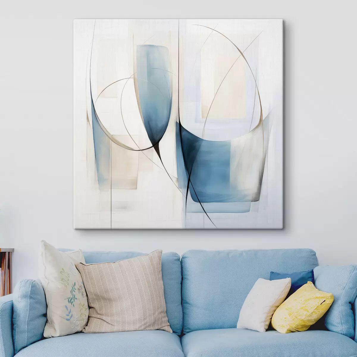 Glezna Abstrakta minimālisma kompozīcija ar zilām un smilškrāsas formām s48403