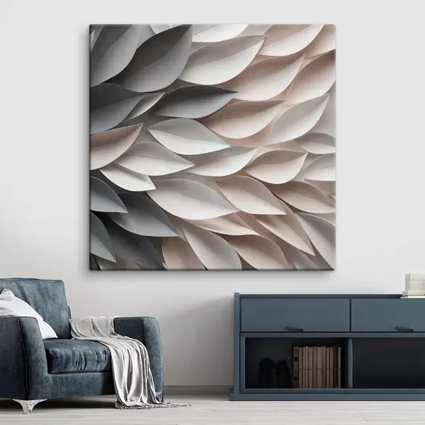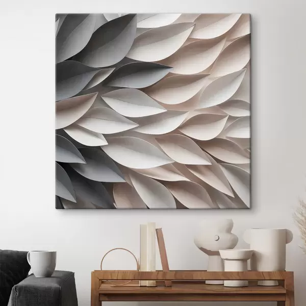Glezna Teksturētas, pārklājošās abstraktas lapu formas neitrālos toņos – smilškrāsā, krēmkrāsā un pelēkā Nr s48408