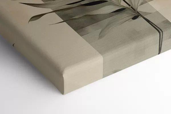Glezna Tumši zaļš augs ar abstraktām ģeometriskām formām un akvareļtekstūrām smilškrāsā un zaļā tonī Nr s48410