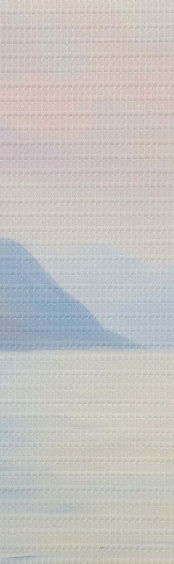 Smalkais diegu pinums uz šī audekla atgādina profesionālu mākslinieku audeklu virsmu.