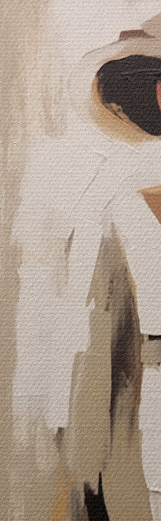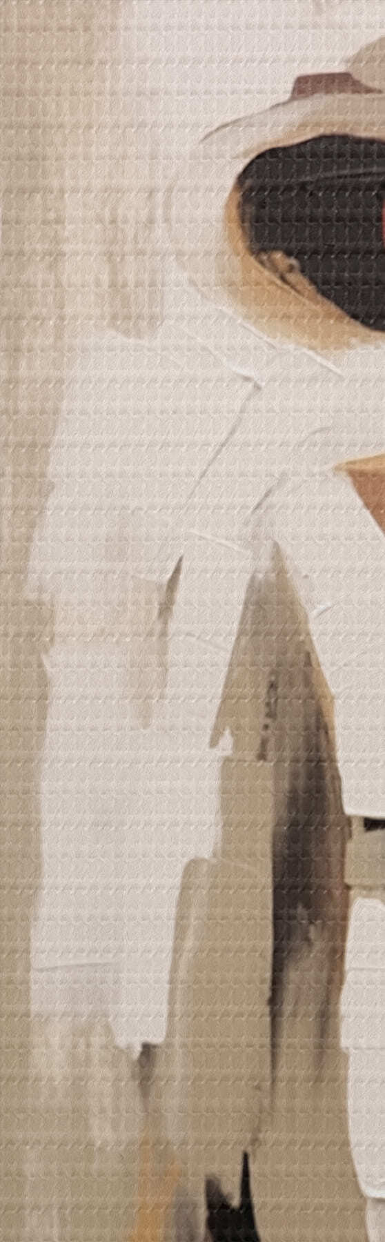 Smalkais diegu pinums uz šī audekla atgādina profesionālu mākslinieku audeklu virsmu.