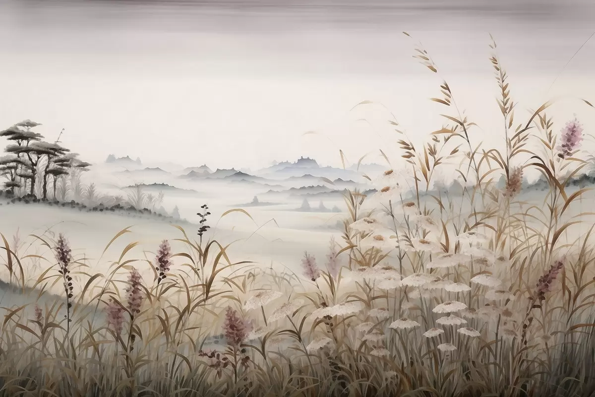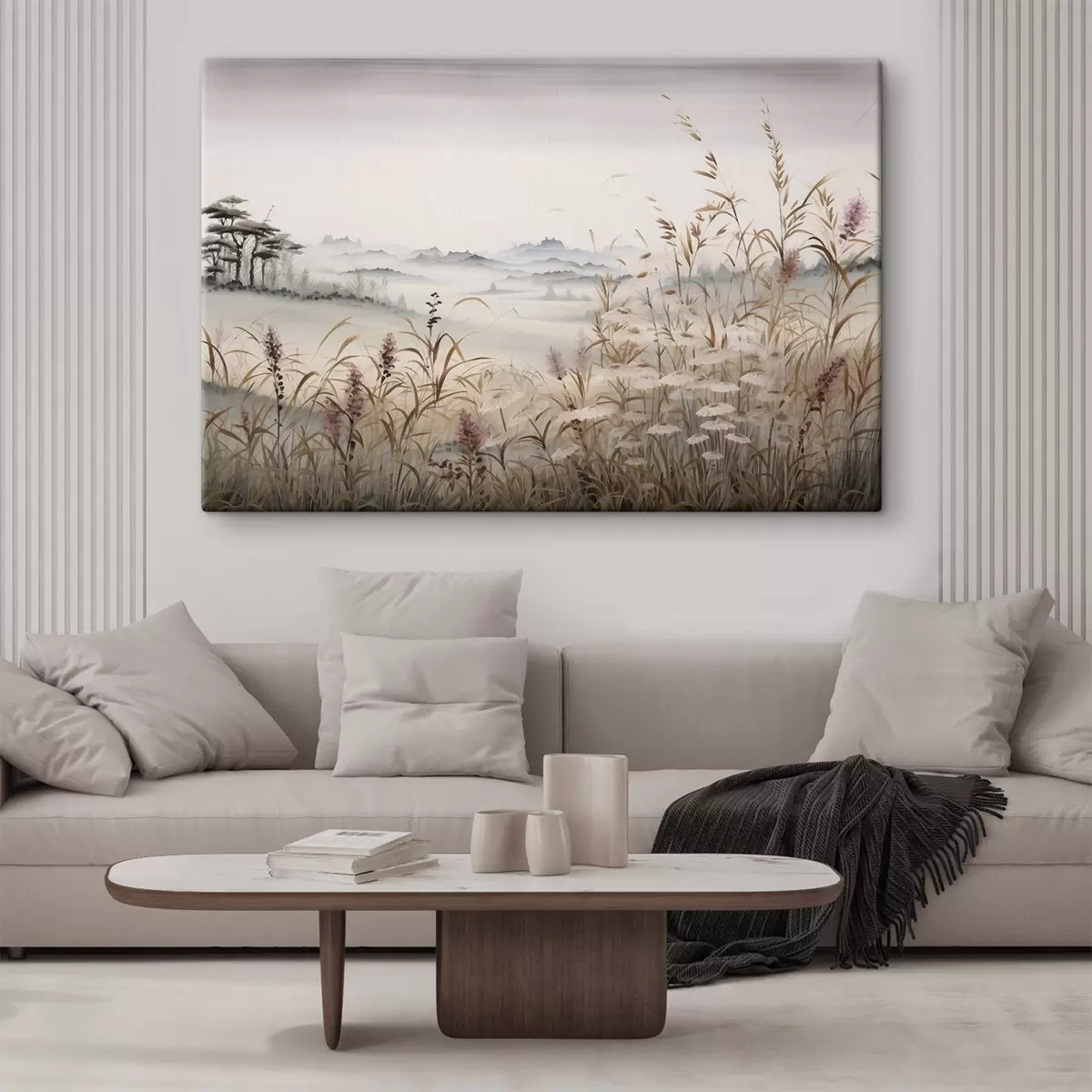 Glezna Miglas apklāts ainavas skats ar zāli Nr s48481