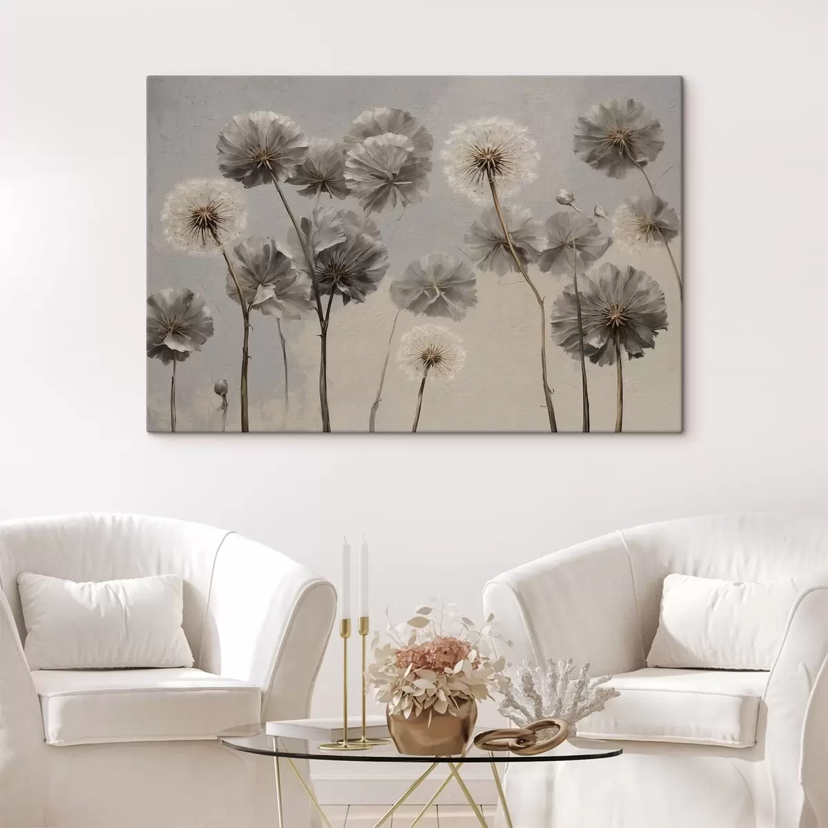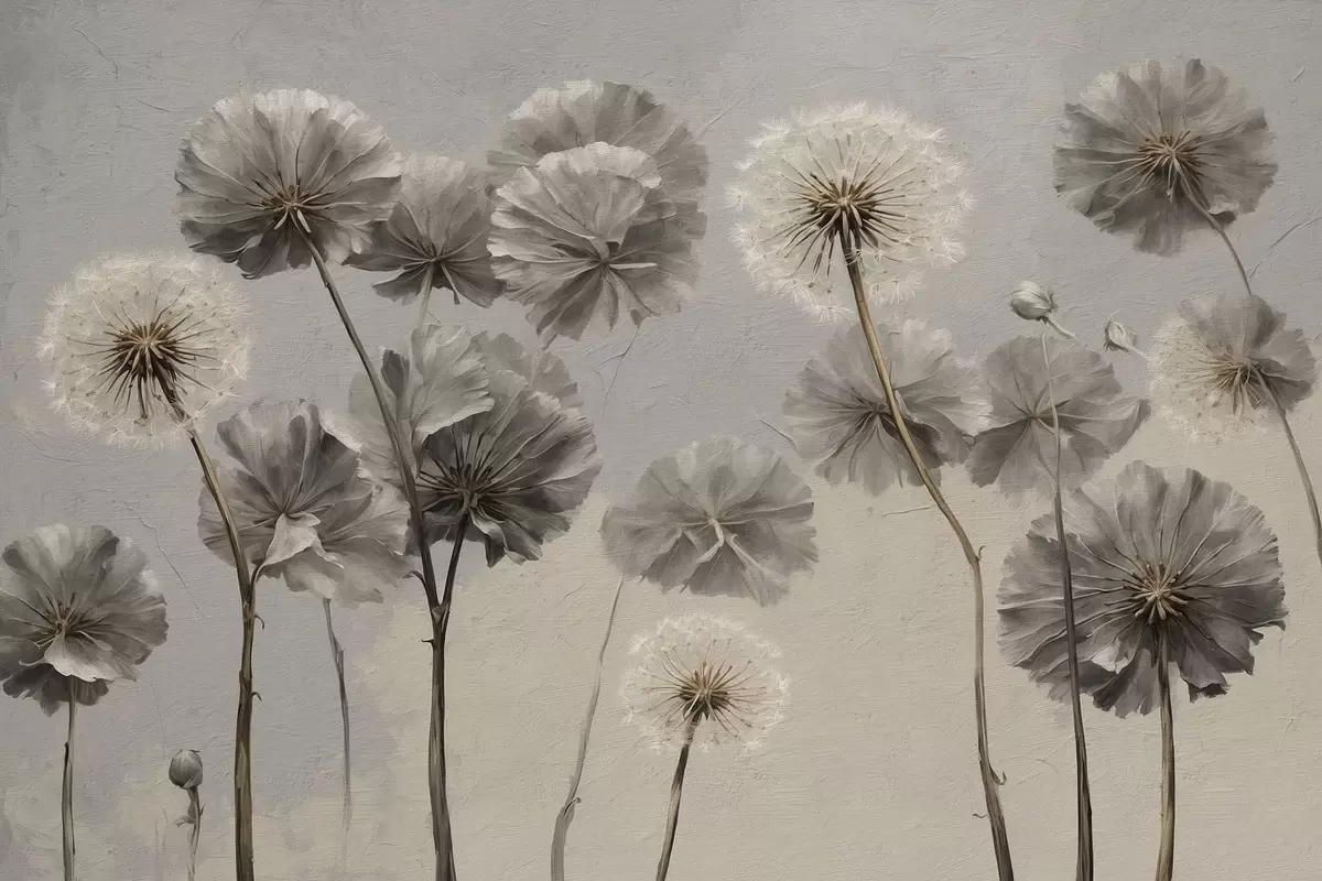 Glezna Dekoratīvi pienenes neitrālos toņos s48492