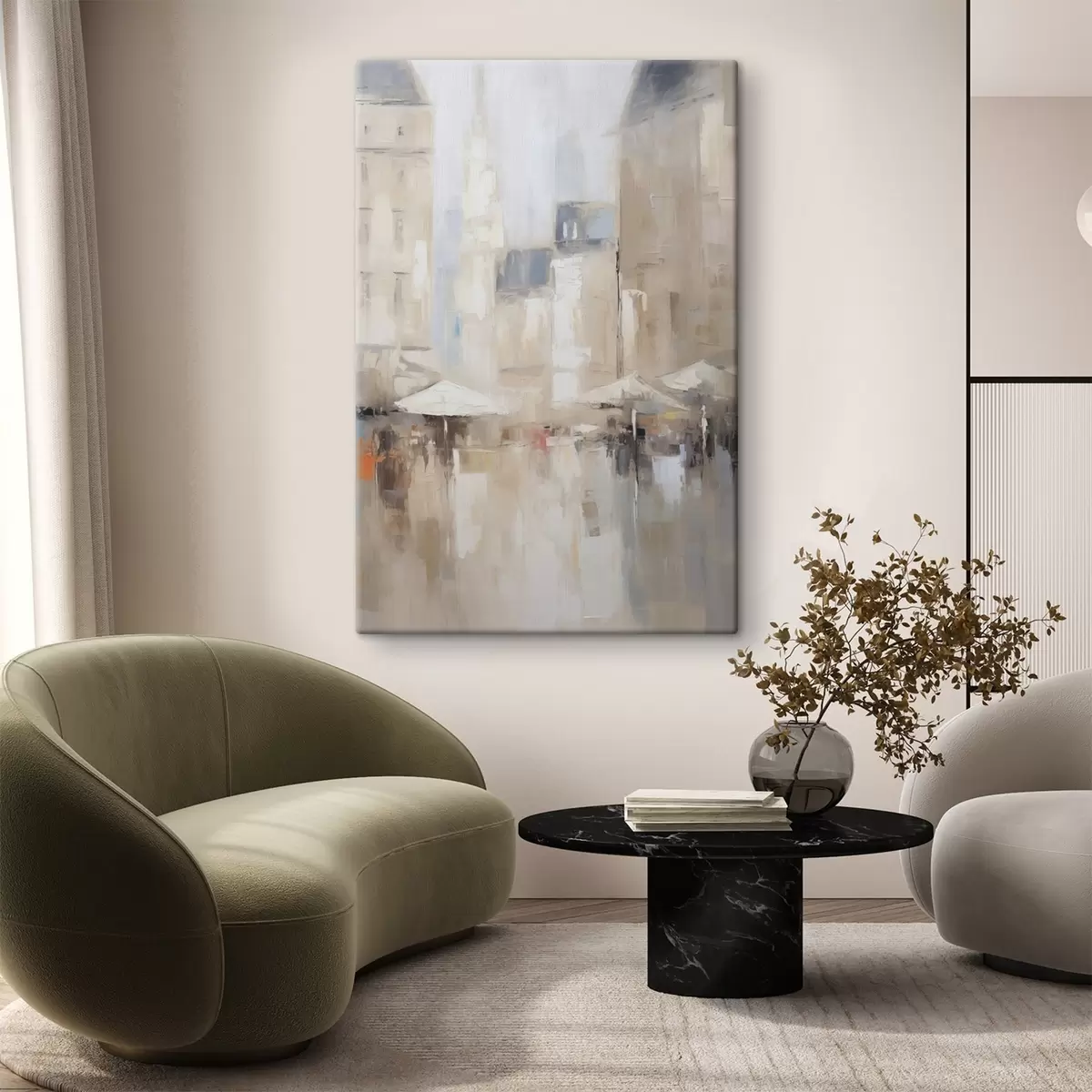Glezna ir iekārtojama uzreiz pēc tās saņemšanas. Glezna tiks izstiepta uz 2 cm platām koka nestuvēm.