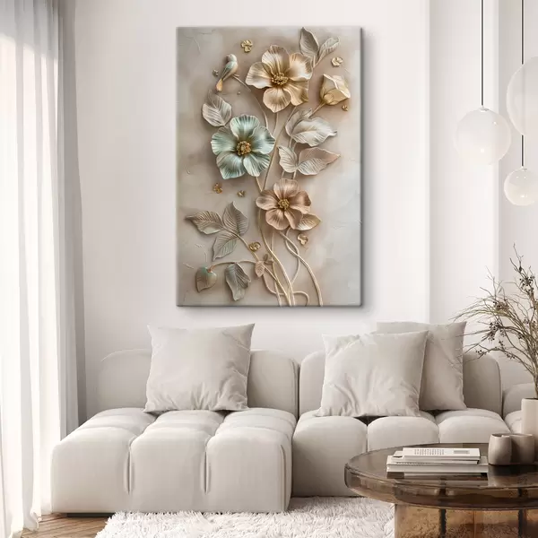 Glezna delikāts ziedu un lapu dekoratīvs kompozīcijas Nr s48527