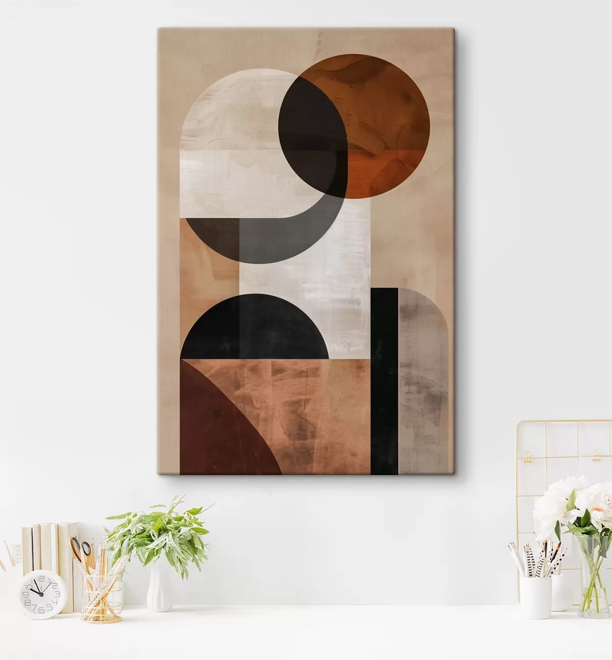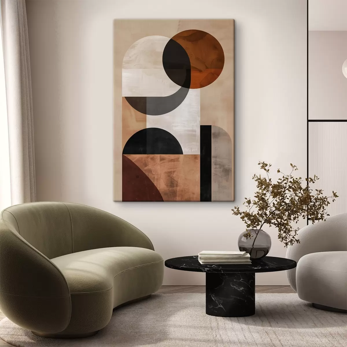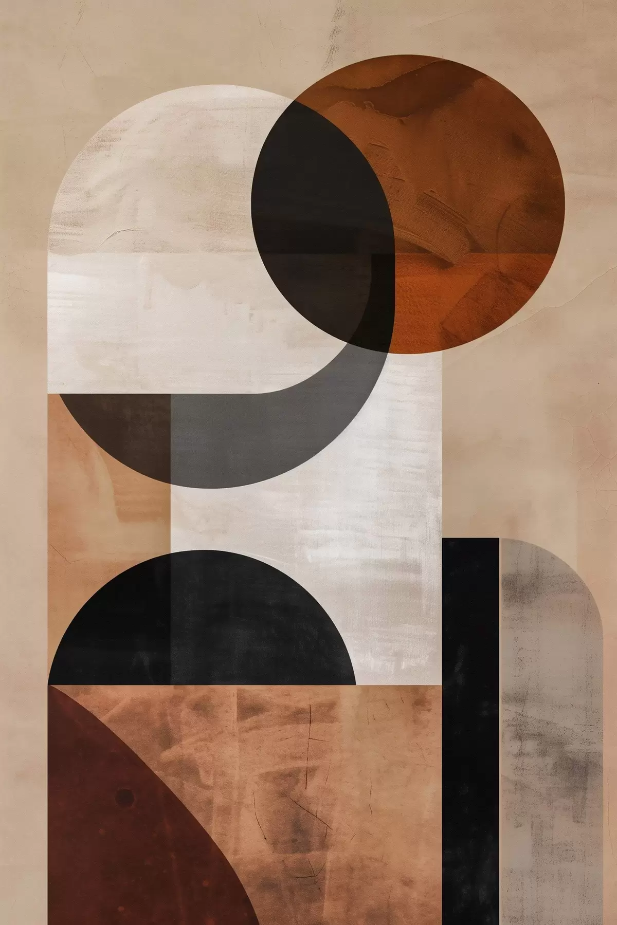 Glezna Ģeometriskā abstrakcija, smilškrāsā un melnā Nr s48583