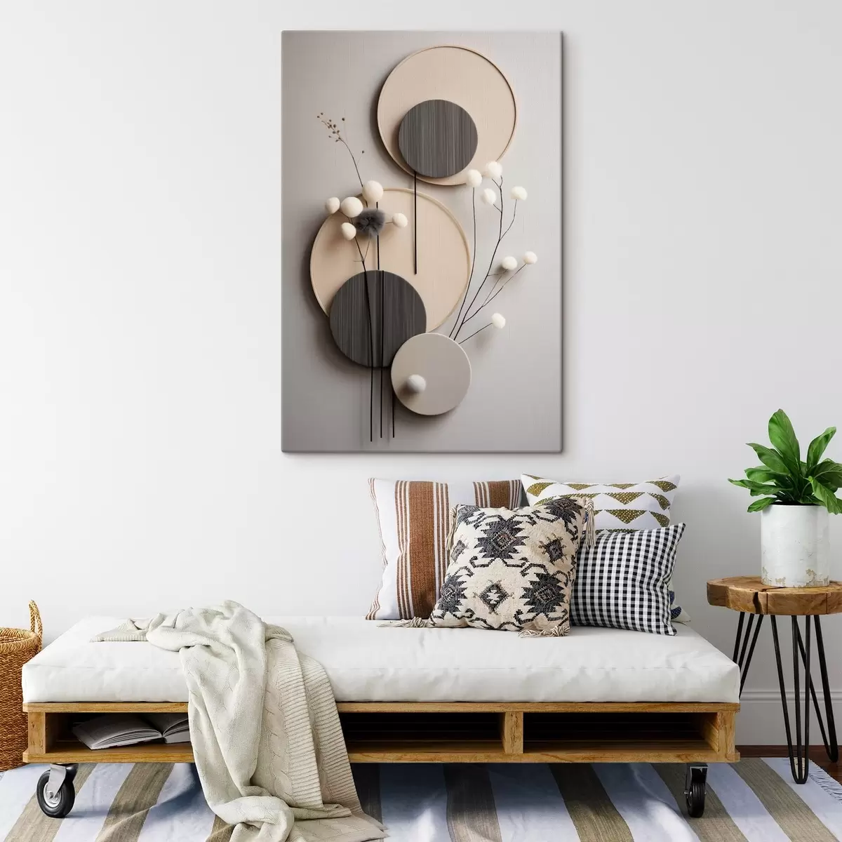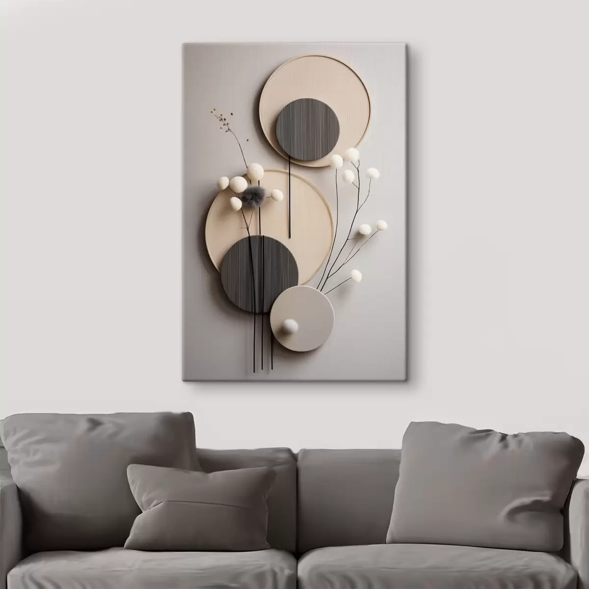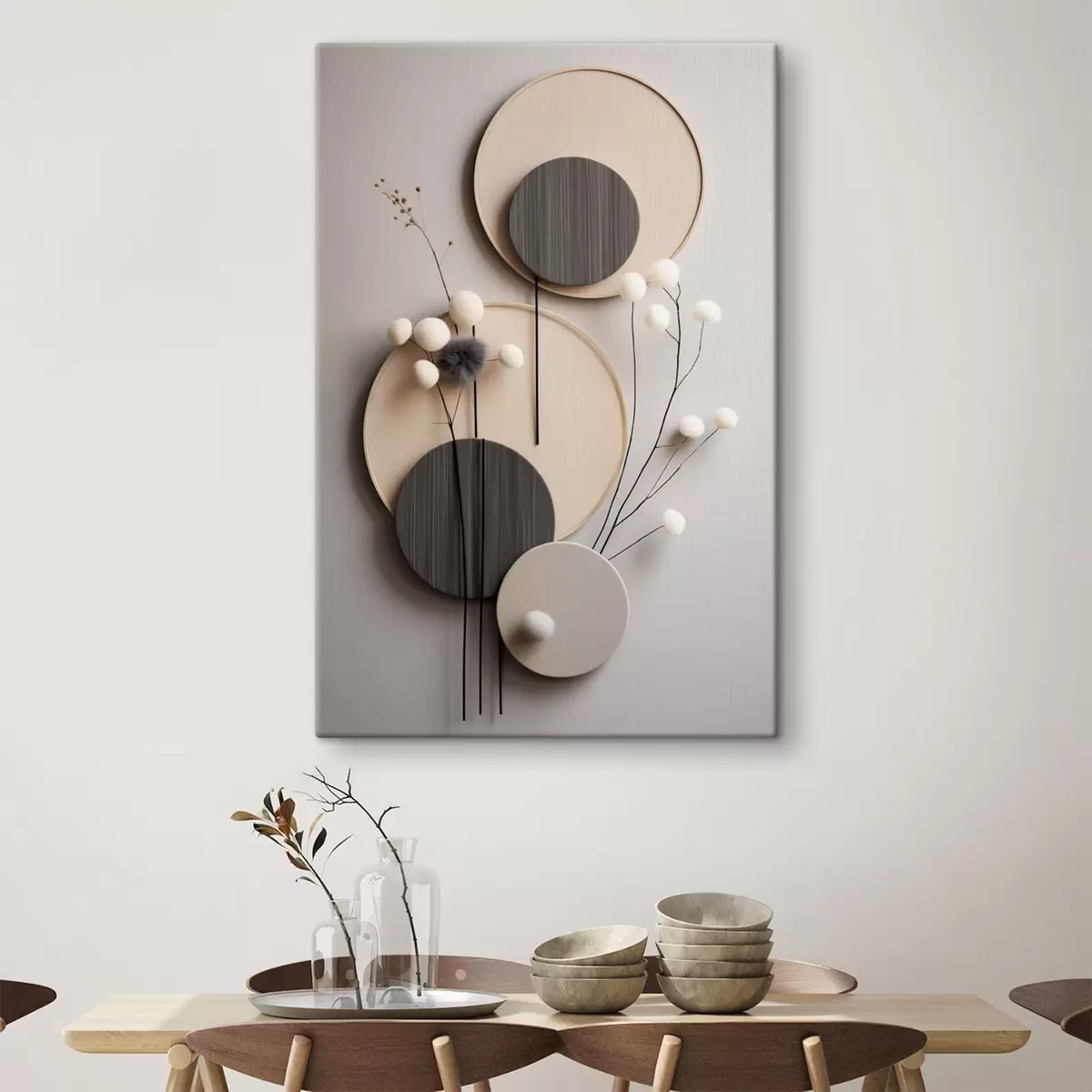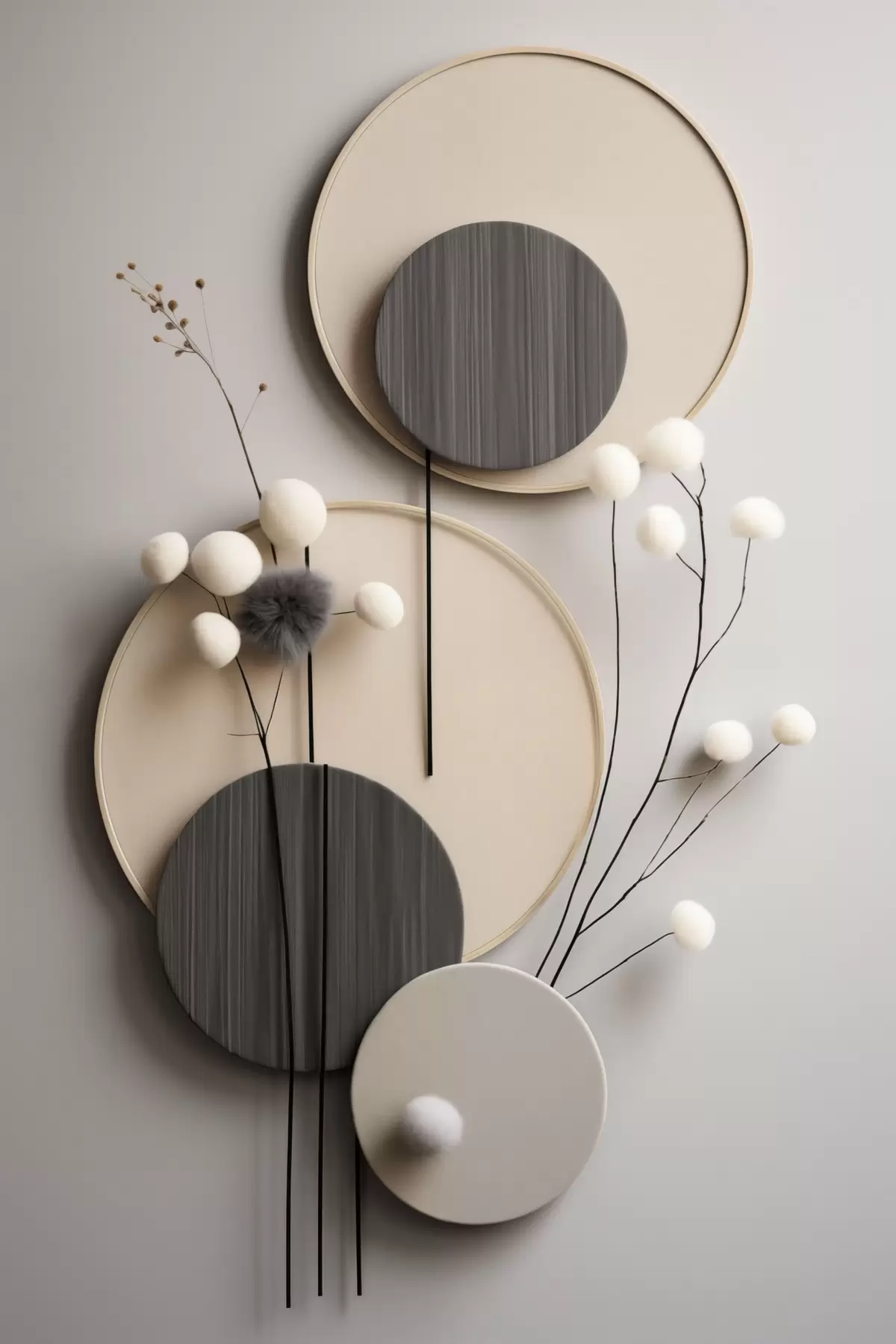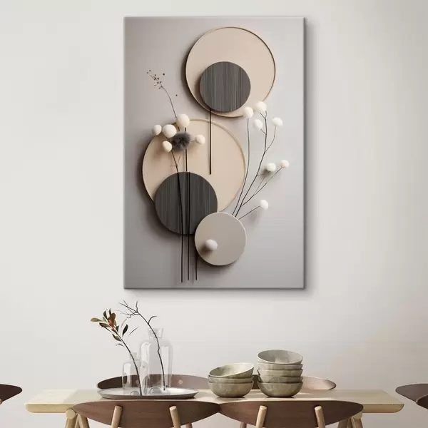 Glezna Apļveida paneļi ar sausām zariņām un mīkstām bumbiņām Nr s48601