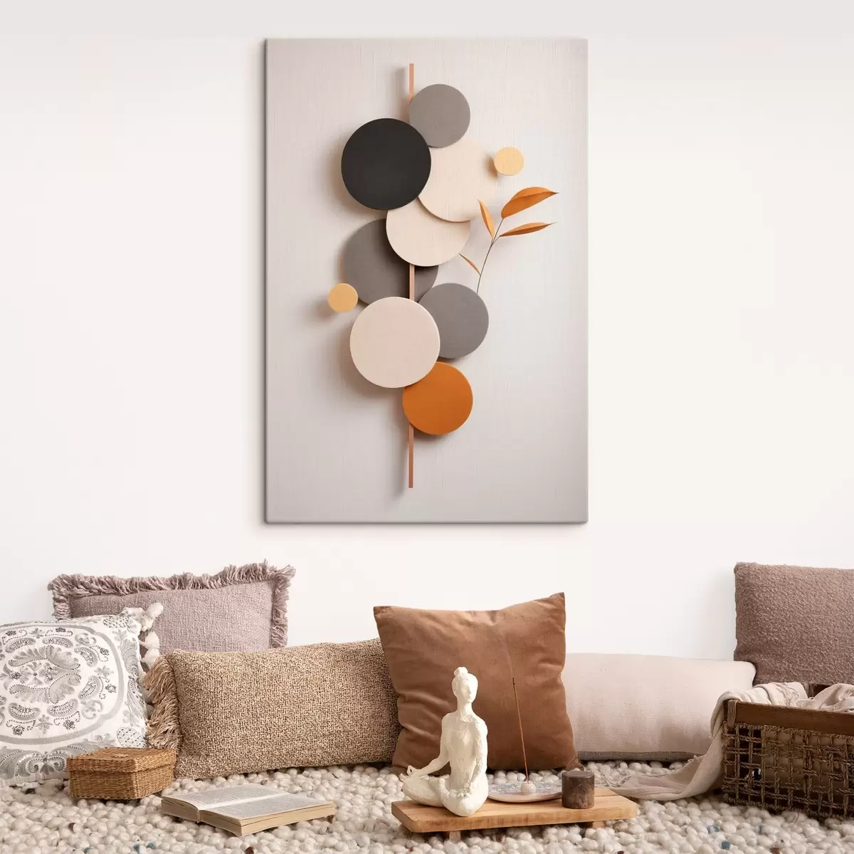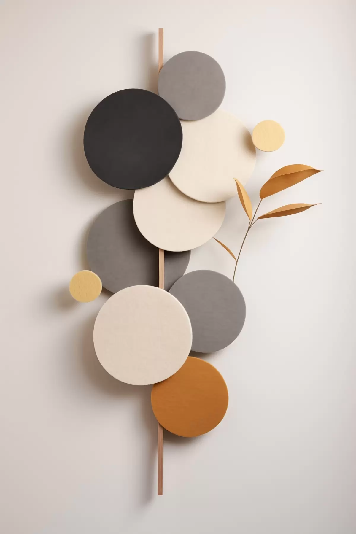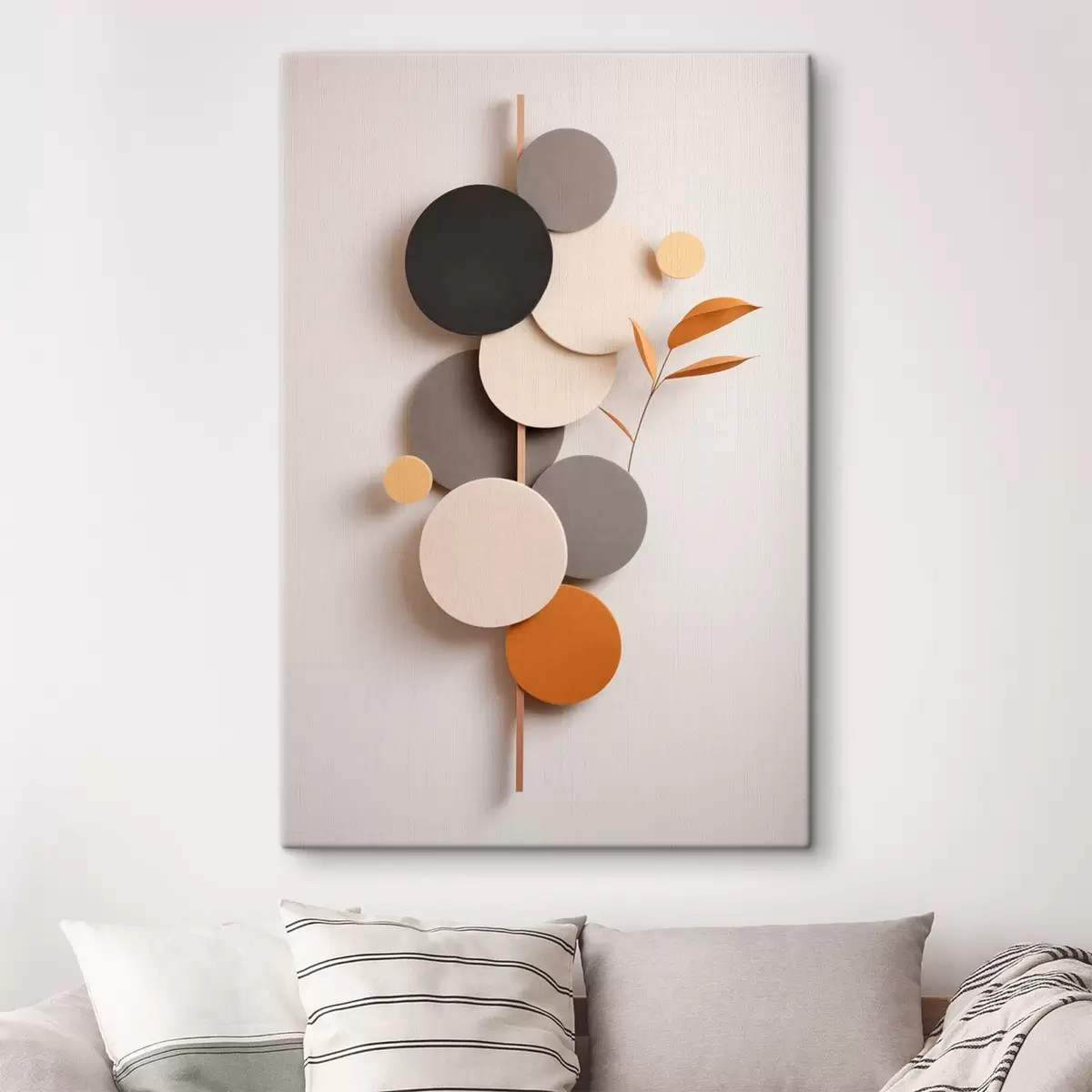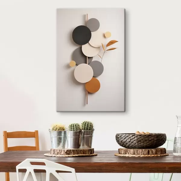 Glezna Abstrakti apļi ar lapām neitrālos toņos Nr s48602