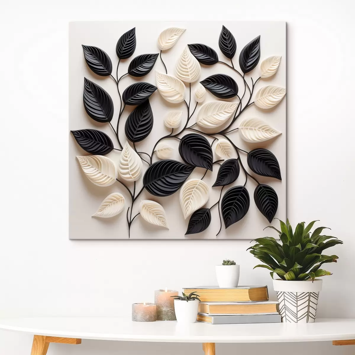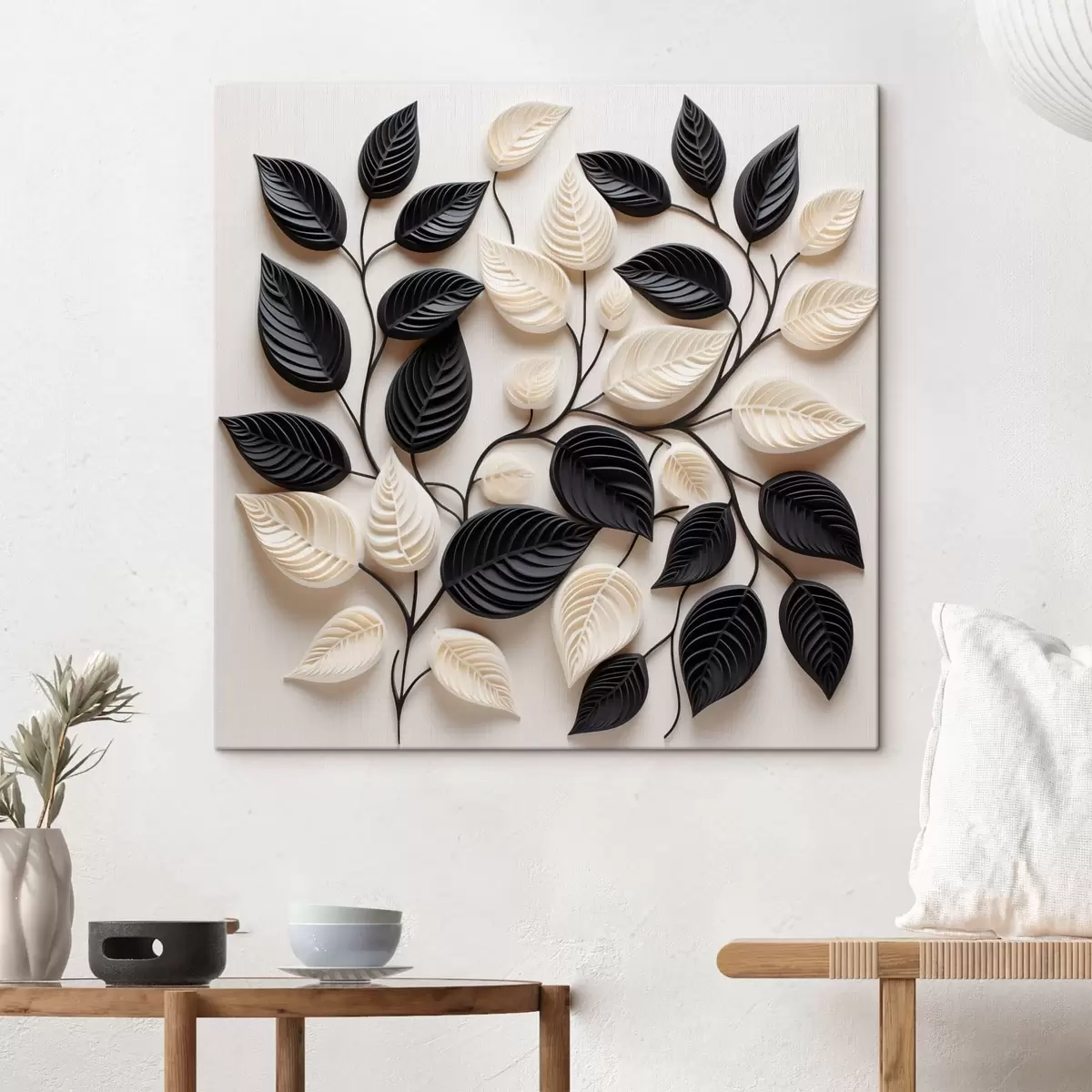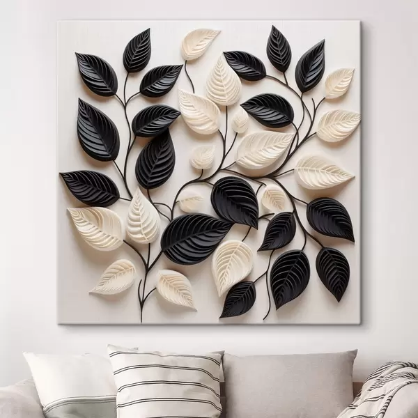 Glezna Melnu un gaišu lapu izkārtojums uz zariem Nr s48606