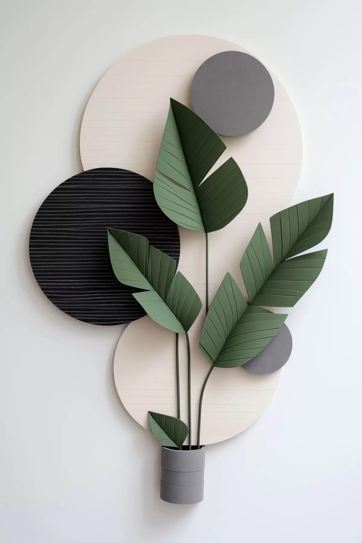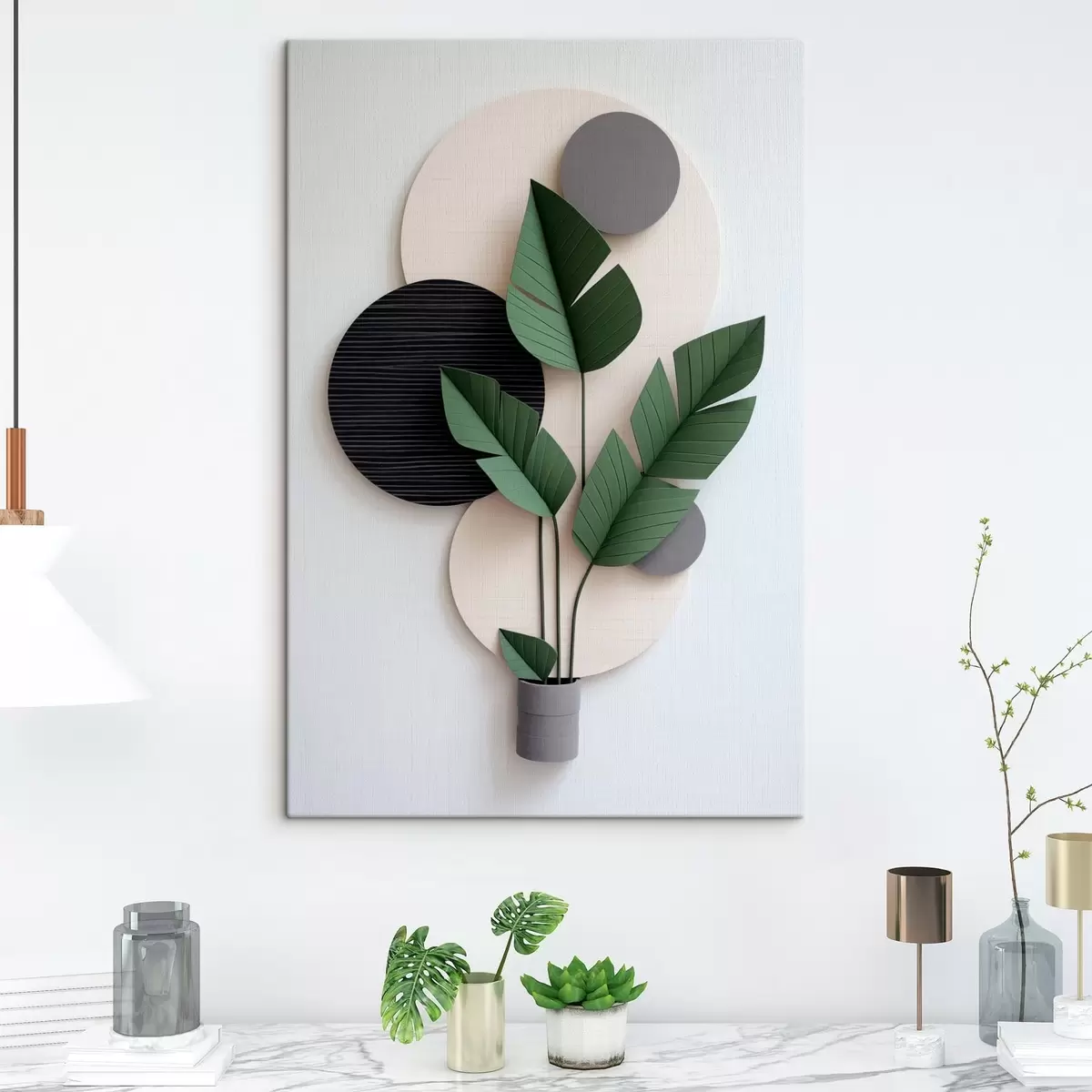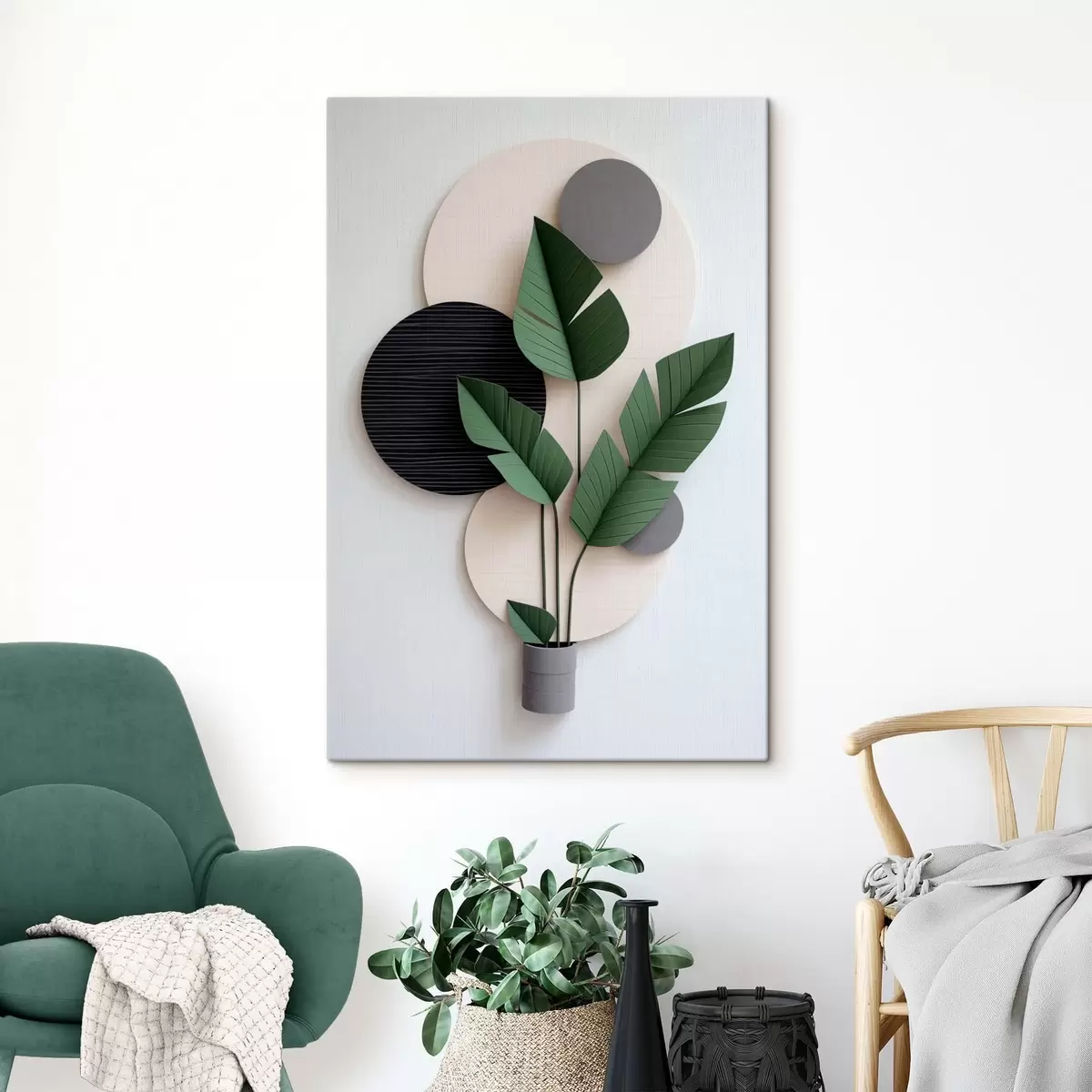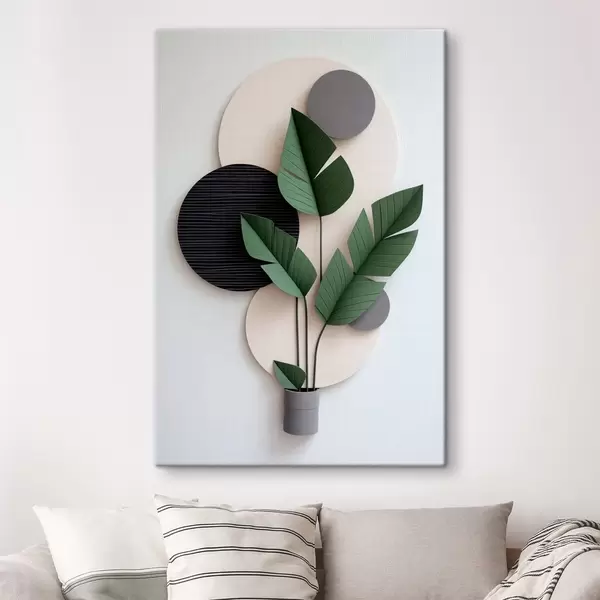 Glezna Ģeometriski apļi un zaļas lapas minimālisma stilā Nr s48607