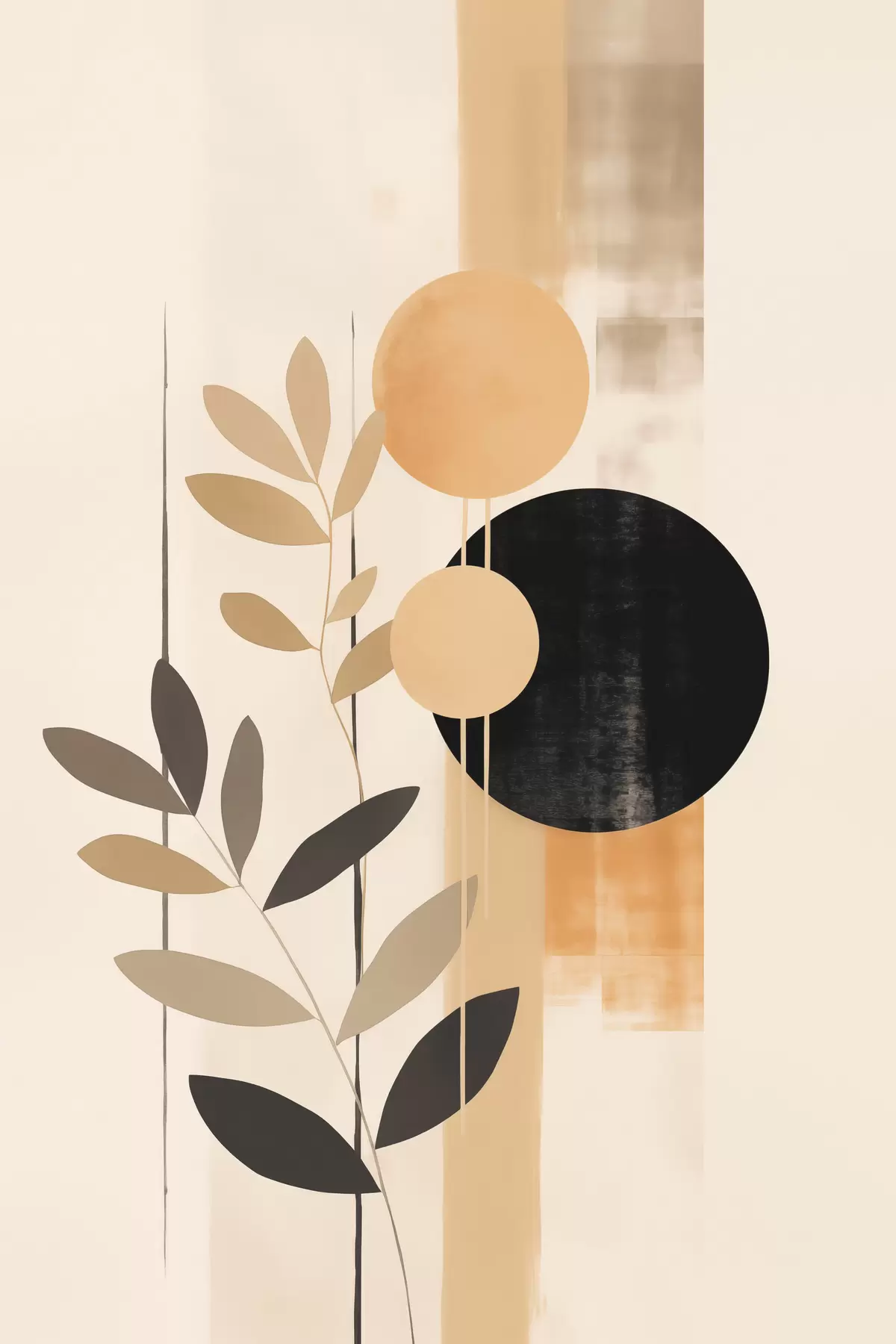 Glezna Abstrakcija ar lapām un apļiem Nr s48613