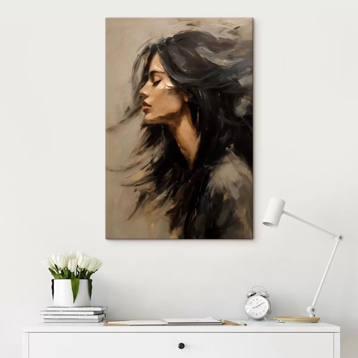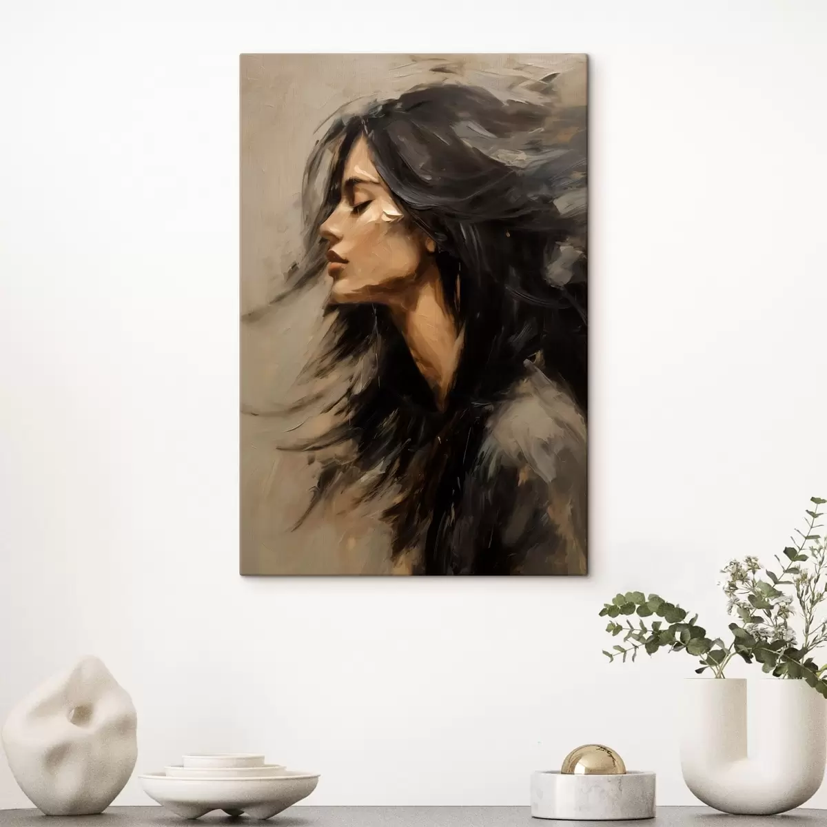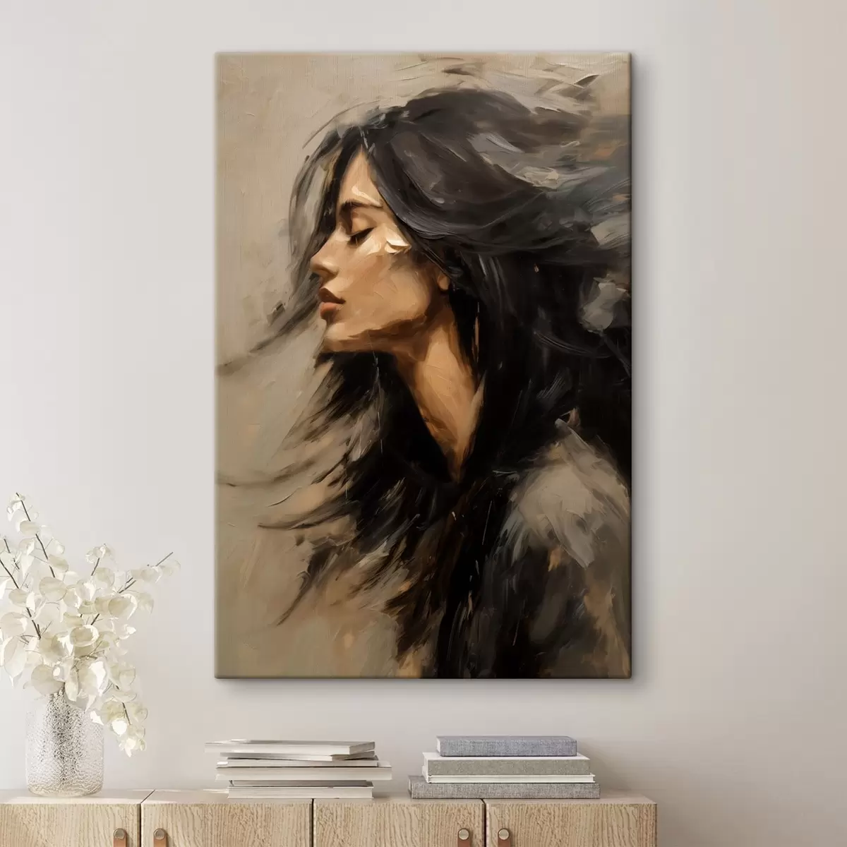 Glezna Sievietes portrets ar plūstošiem matiem gleznieciskā stilā Nr s48622