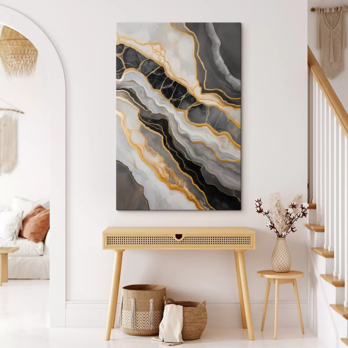Glezna ir iekārtojama uzreiz pēc tās saņemšanas. Glezna tiks izstiepta uz 2 cm platām koka nestuvēm.