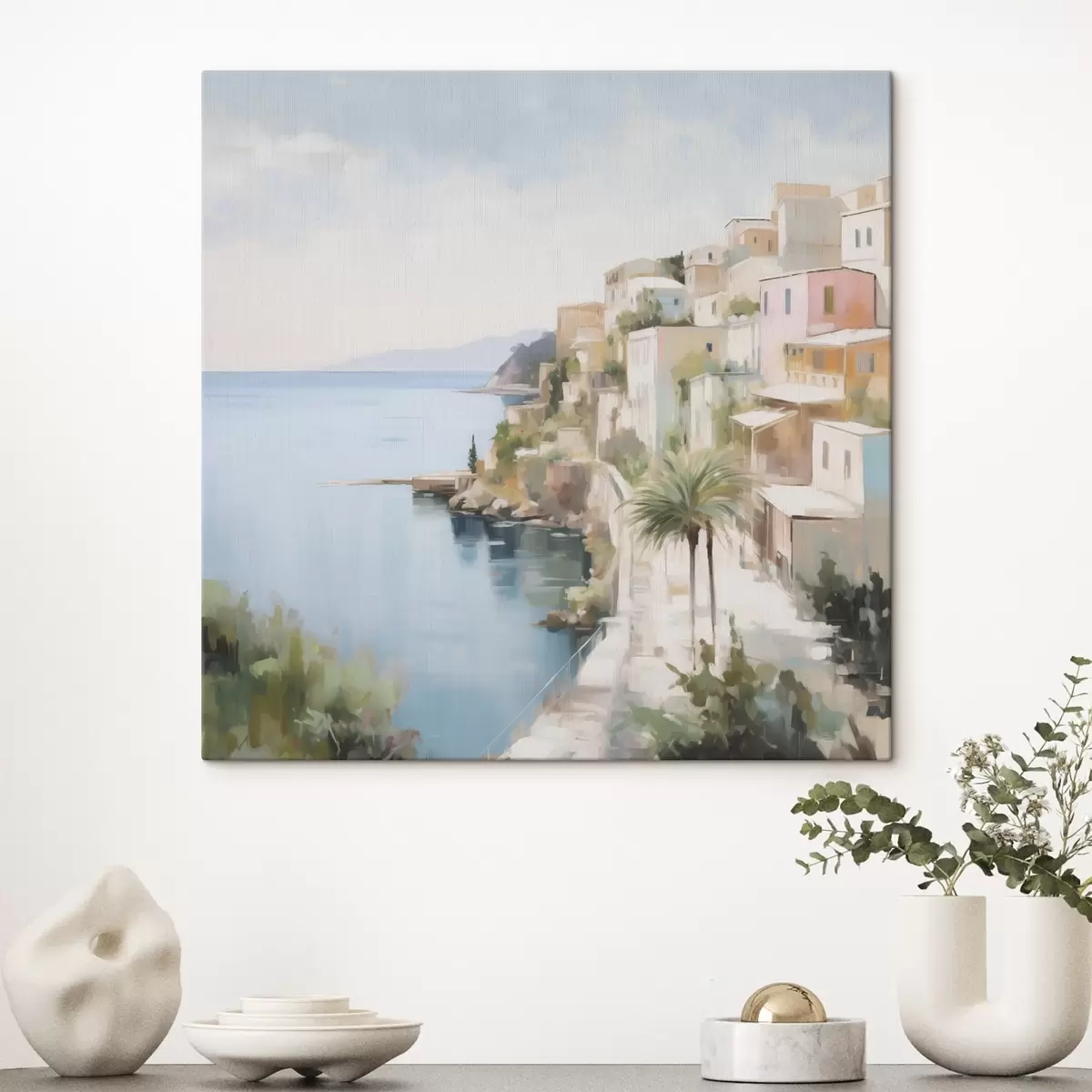 Glezna Jūras piekrastes pilsētas ainava, glezniecības imitācija Nr s48674