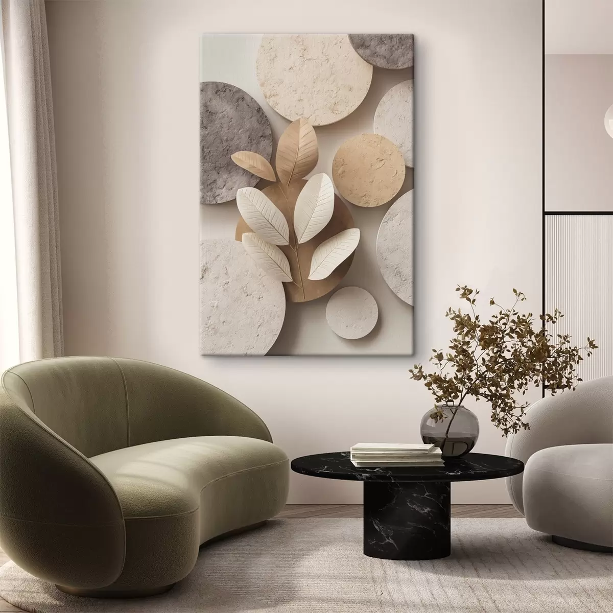 Glezna Kompozīcija ar lapām un apļiem Nr s48691