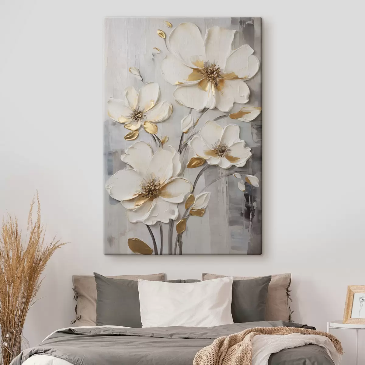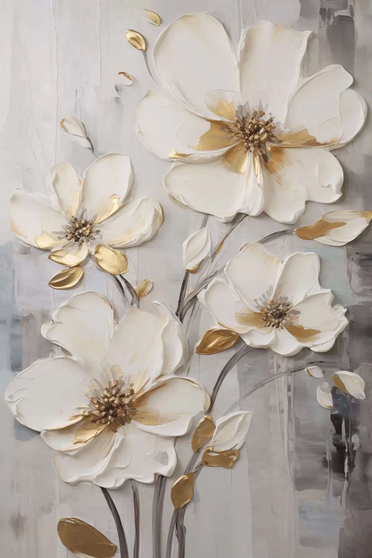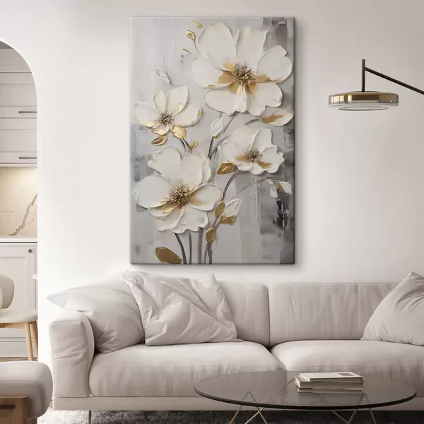 Glezna Baltas ziedi ar dzelteniem akcentiem uz faktūru fona Nr s48721