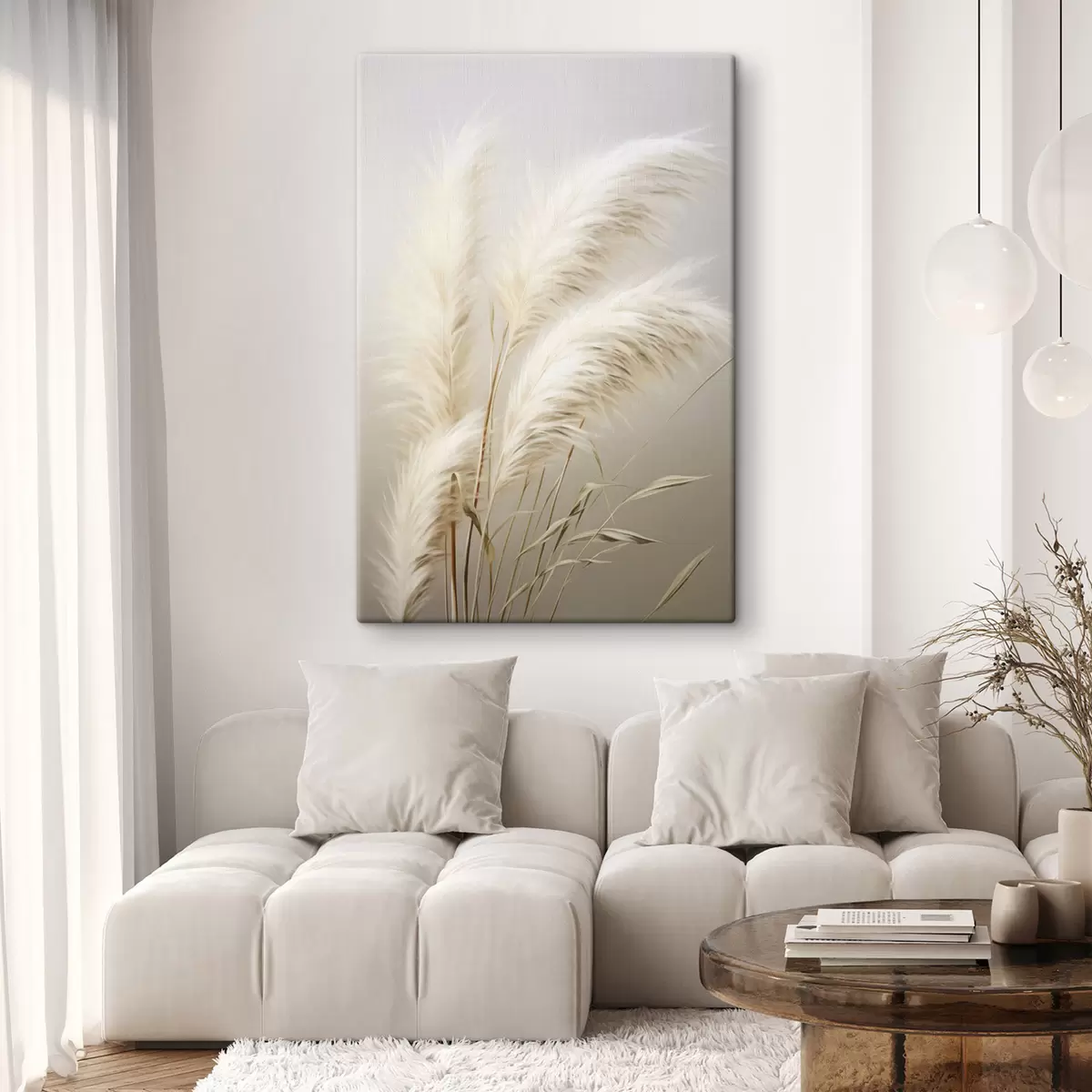 Glezna Vairāki augsti, pūkaini pampas zāles stiebri ar garām, plānām lapām Nr s48724