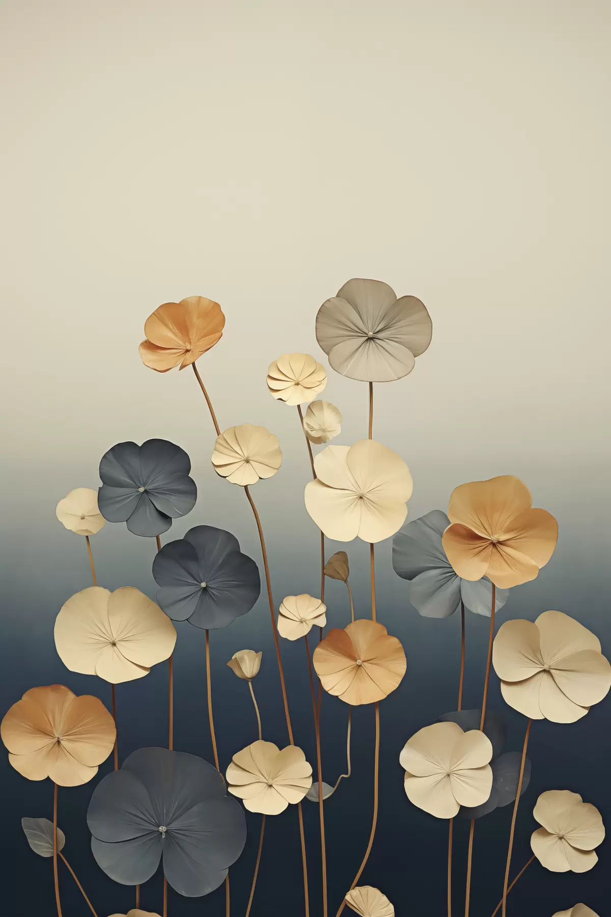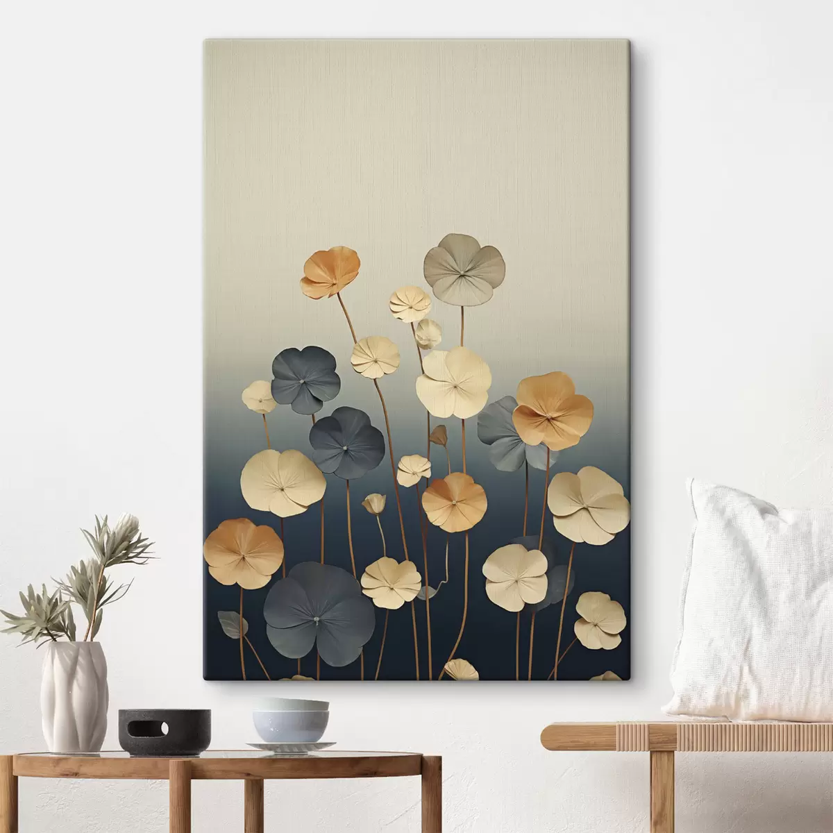 Glezna Ūdensrožu lapas uz klusa smilškrāsas un tumši zila fona Nr s48733