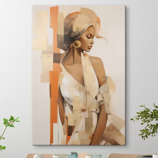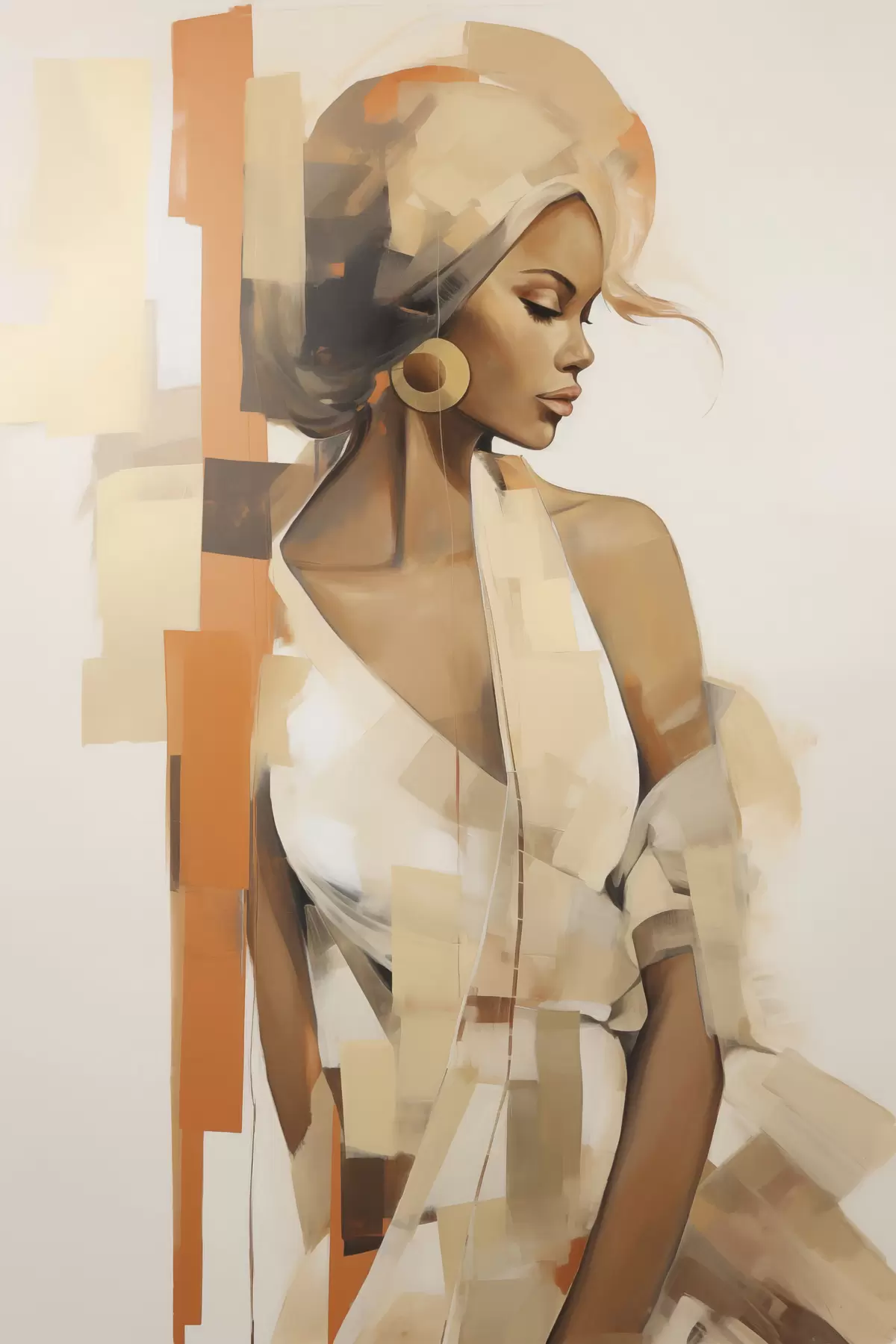 Glezna Abstrakts sievietes portrets ar oranžām un smilškrāsas formām Nr s48735