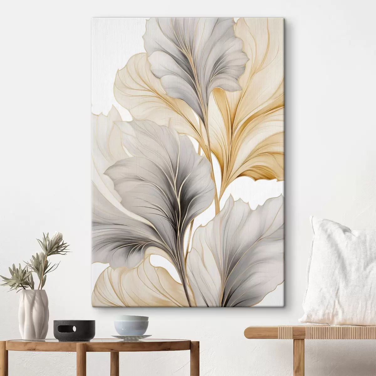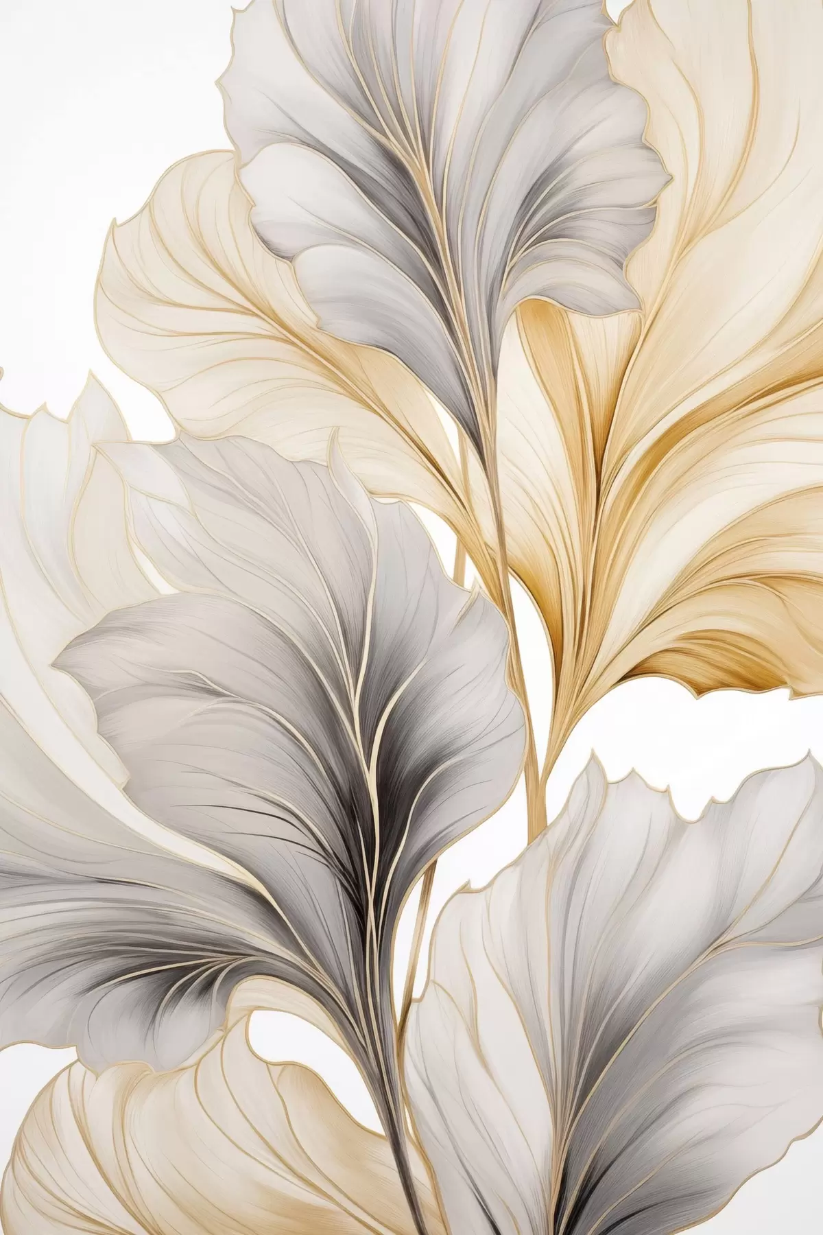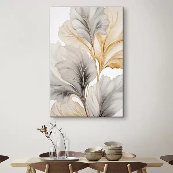 Glezna Lielas, caurspīdīgas lapas pelēkā un dzeltenā toņos Nr s48745