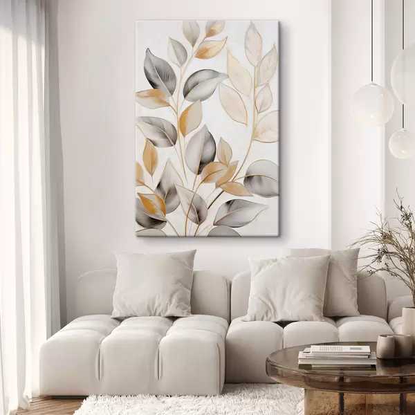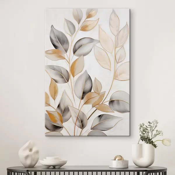 Glezna Lielas, caurspīdīgas lapas pelēkā un dzeltenā toņos Nr s48746