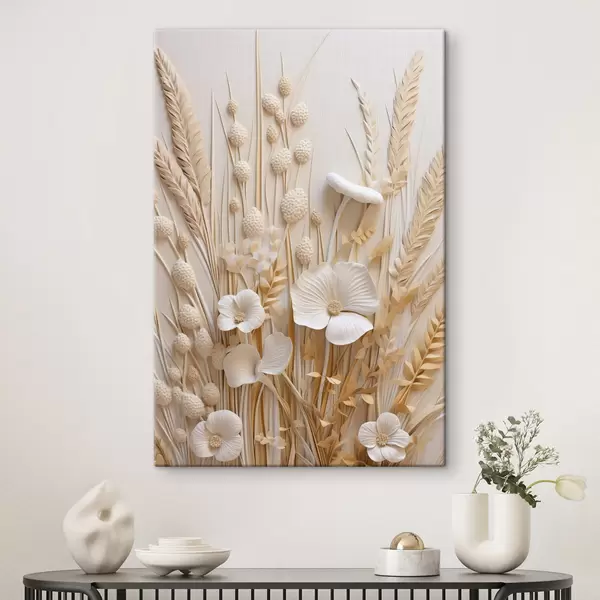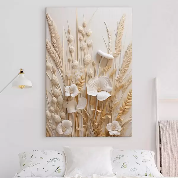 Glezna Krēmkrāsas magoņu pušķis ar žāvētiem kviešu stiebriem Nr s48748