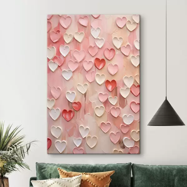 Glezna Sirds formas dažādos persiku un rozā toņos, izpildītas teksturētā, gleznotā stilā Nr s48752