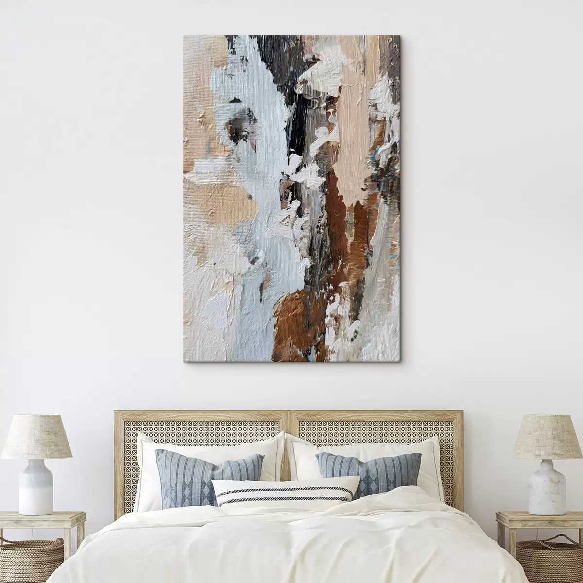 Glezna ir iekārtojama uzreiz pēc tās saņemšanas. Glezna tiks izstiepta uz 2 cm platām koka nestuvēm.