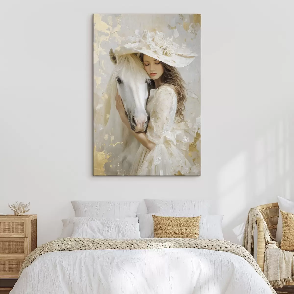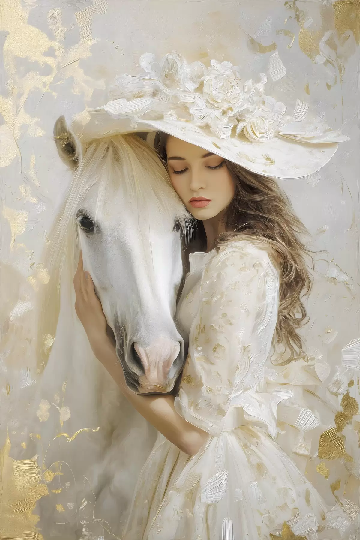 Glezna meitene ar baltu zirgu, gleznota eļļas tehnikā Nr s48790