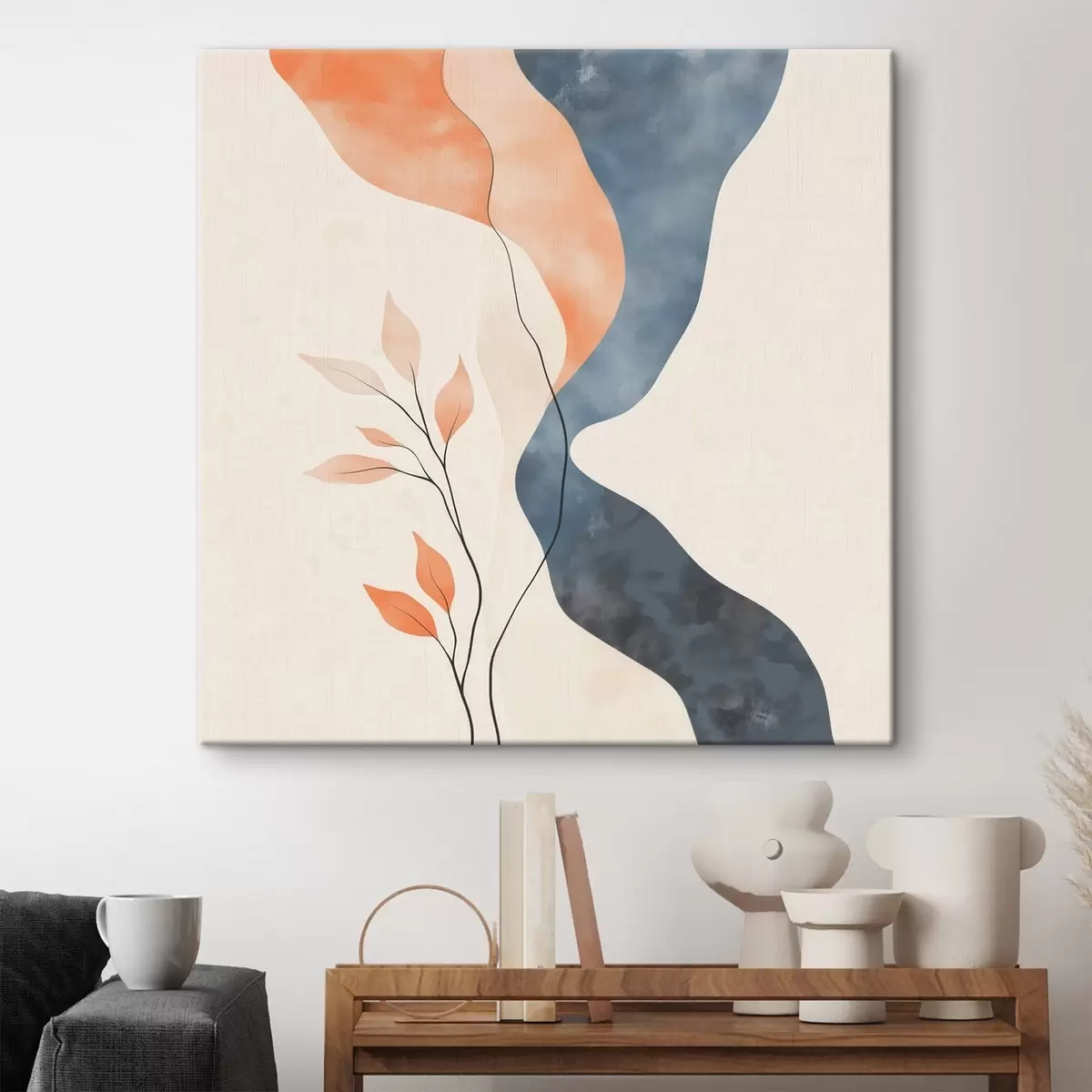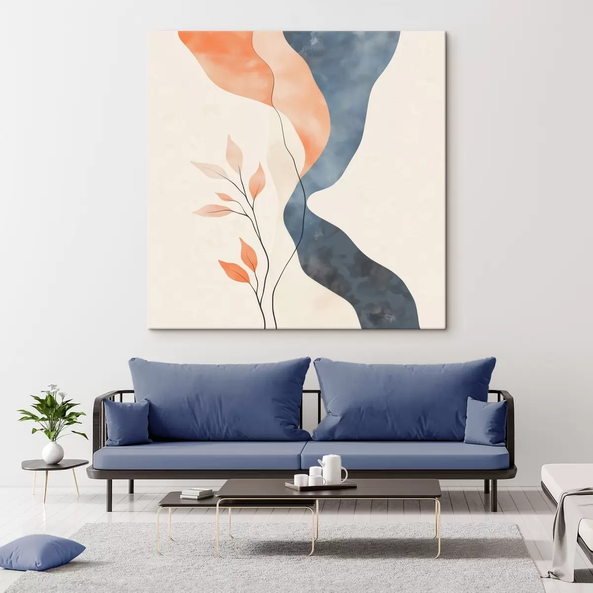 Glezna Ziedu kompozīcija ar plūstošām līnijām zilo un oranžo toņu gammas krāsās Nr s48837